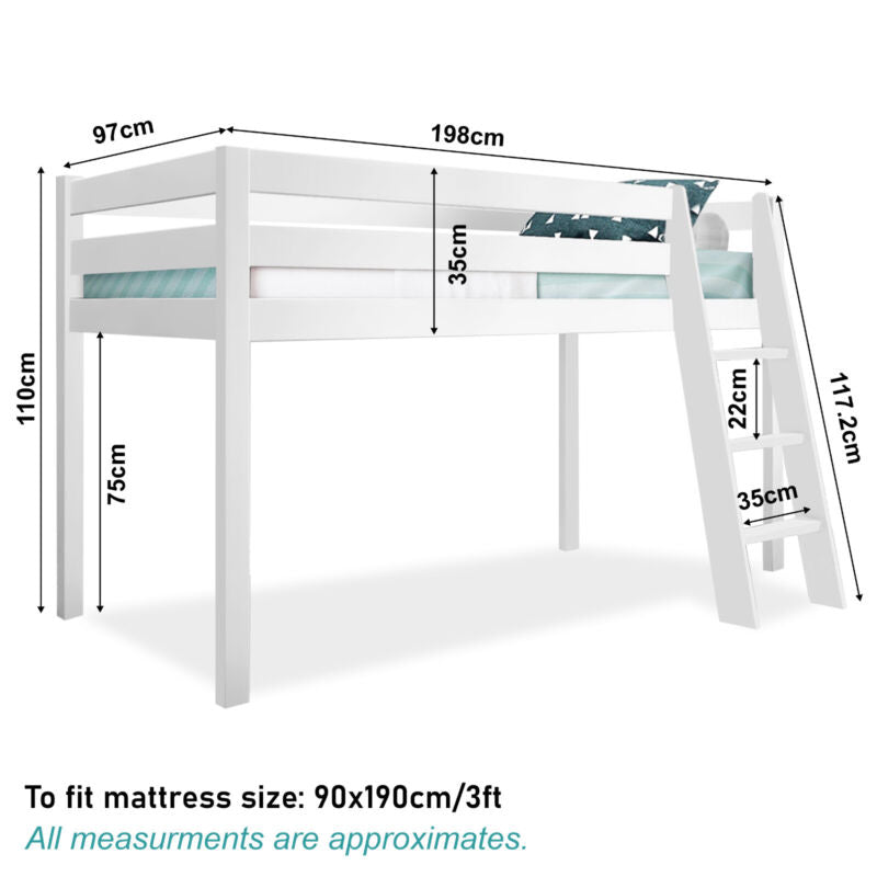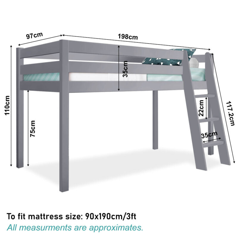 Cabin Bed Kids Bunk Beds Mid Sleeper Loft Bed Single Childrens Pine Wooden Frame