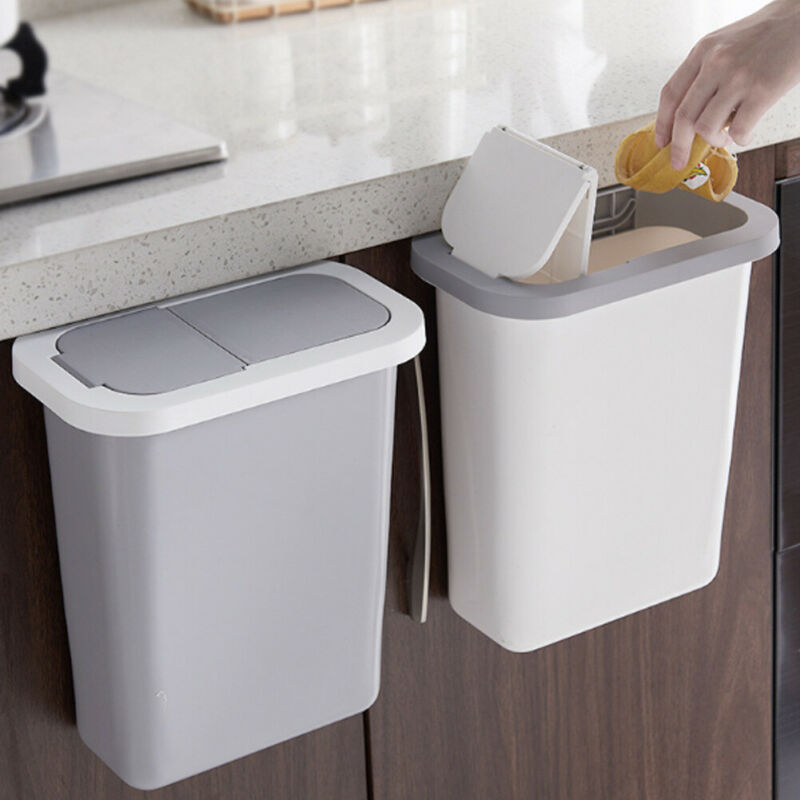 Cabinet Door Hanging Trash Can Waste Bin Plastic Garbage Basket Kitchen Office