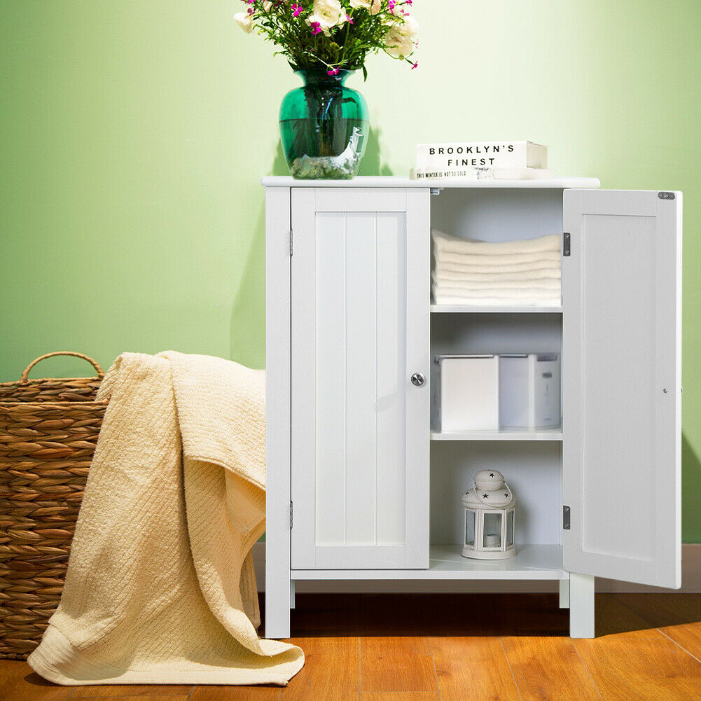 Cabinet Storage Cupboard Sideboard White Wooden 2 Doors &3 Shelves Hallway Unit