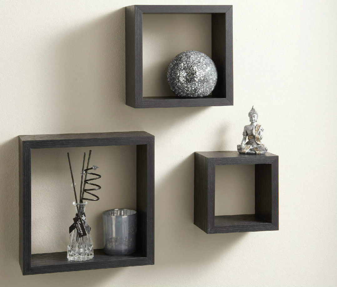 Cali Modern Set of 3 Floating Wall Shelves Display Cube Shelf White Black Oak