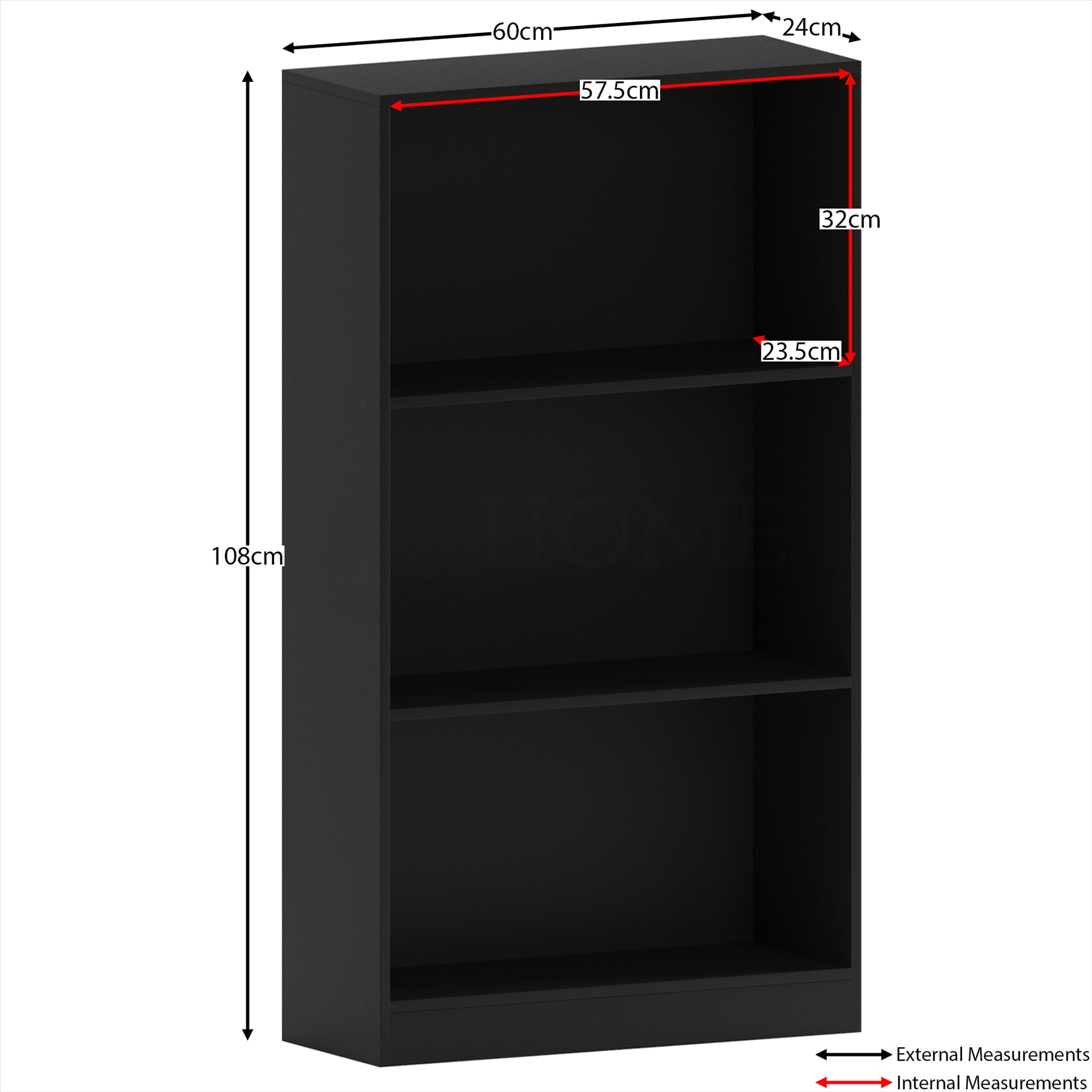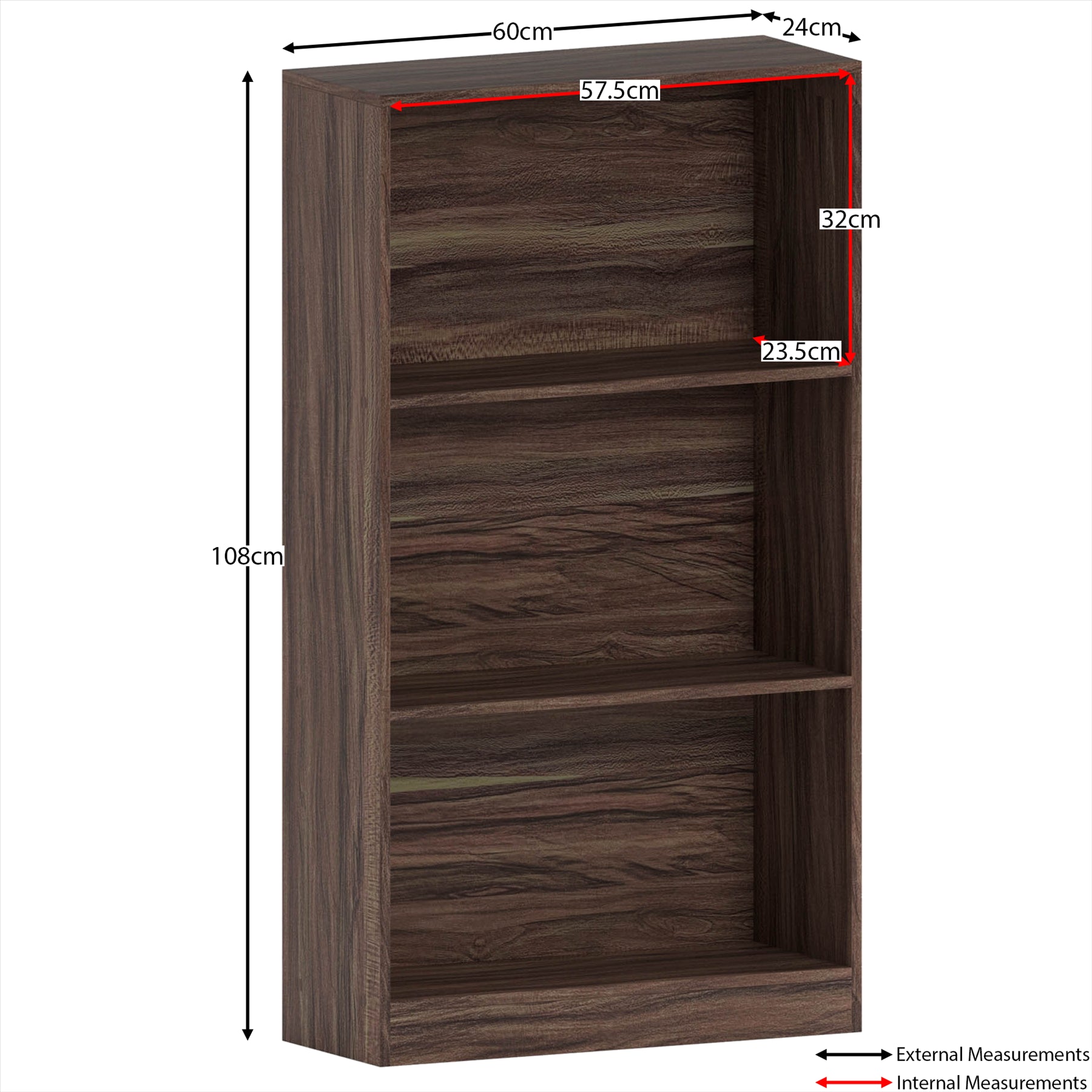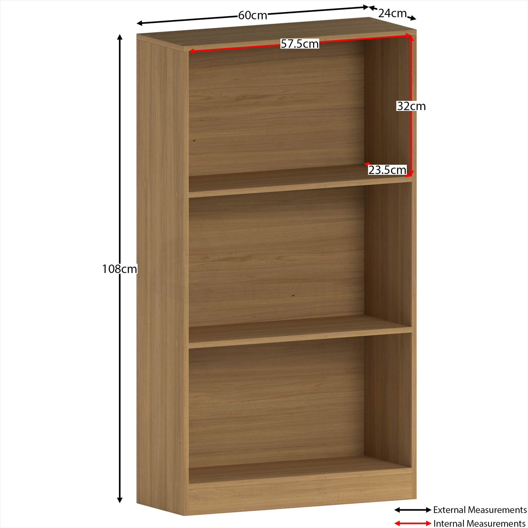 Cambridge 3 Tier Medium Bookcase Display Shelving Storage Stand Wooden Unit
