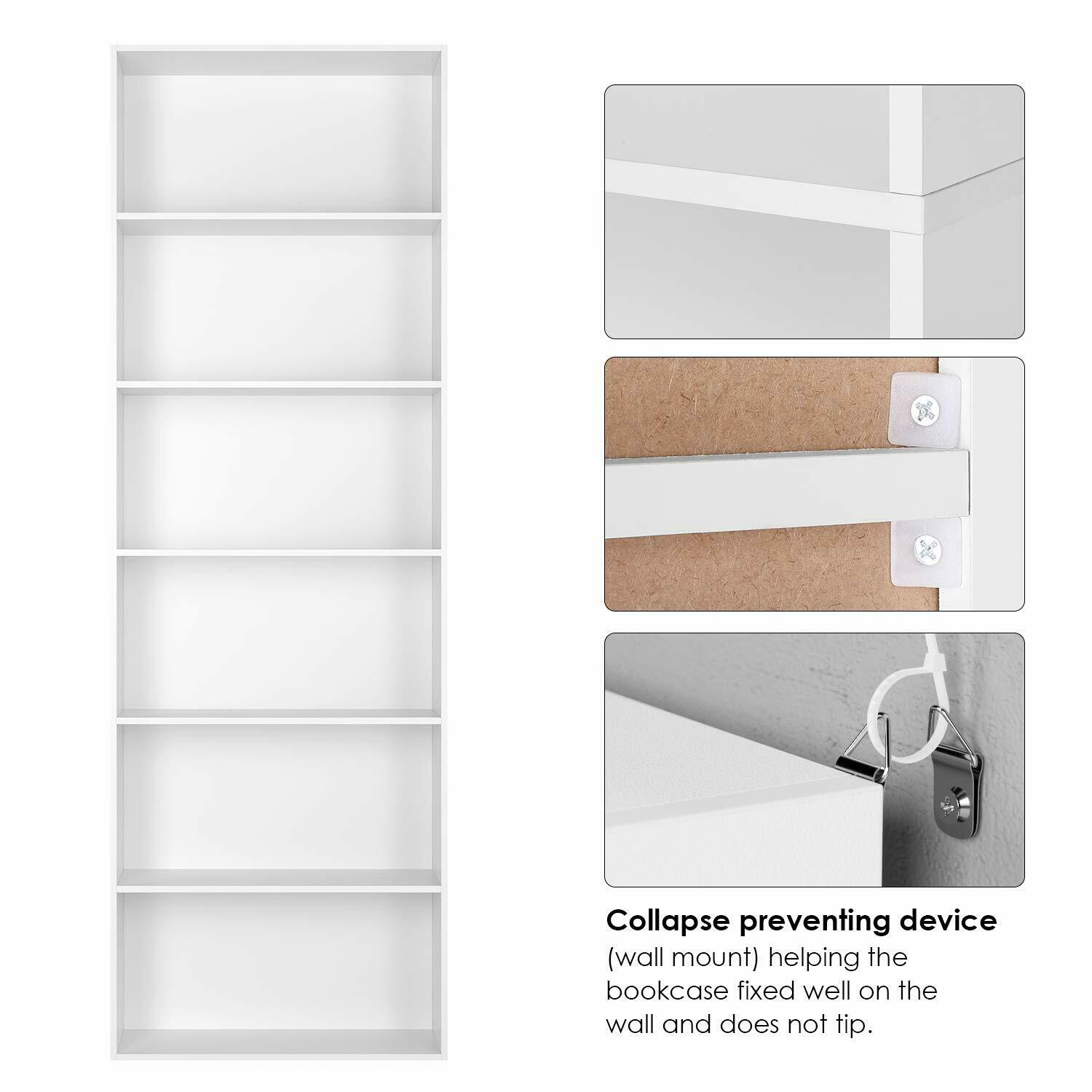 6 Tier XL Bookcase Display Shelving Storage Unit Stand Wooden Shelves