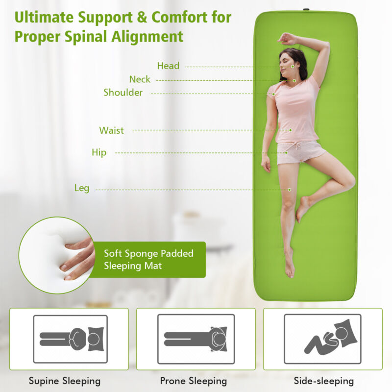 Condition: New: A brand-new, unused, unopened and undamaged item in original retail packaging (where packaging ... Size: Single Colour: Green Type: Inflatable Mattress Features: Extra carry bag Brand: Costway Suitable For: Camping Shell Material: TPU EAN: 6085650627702