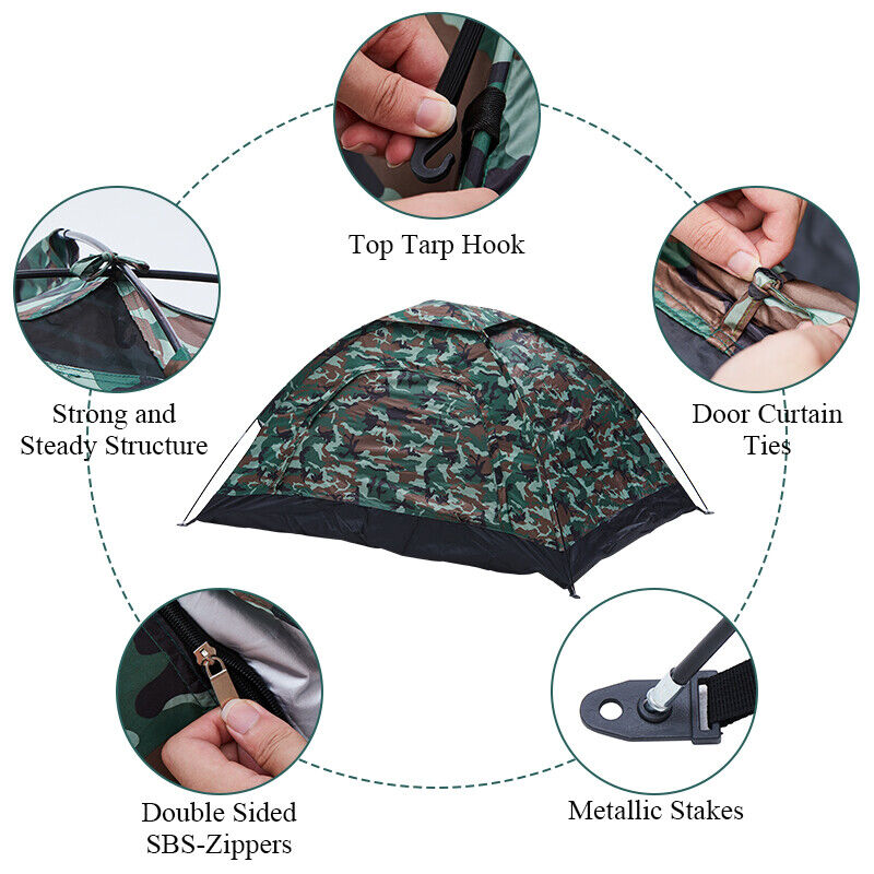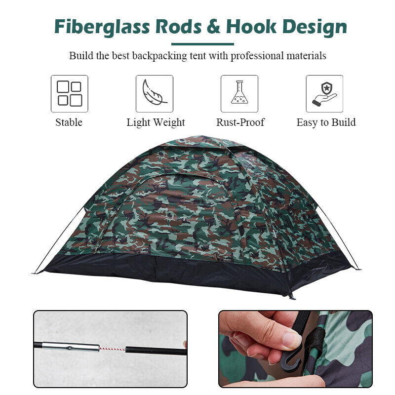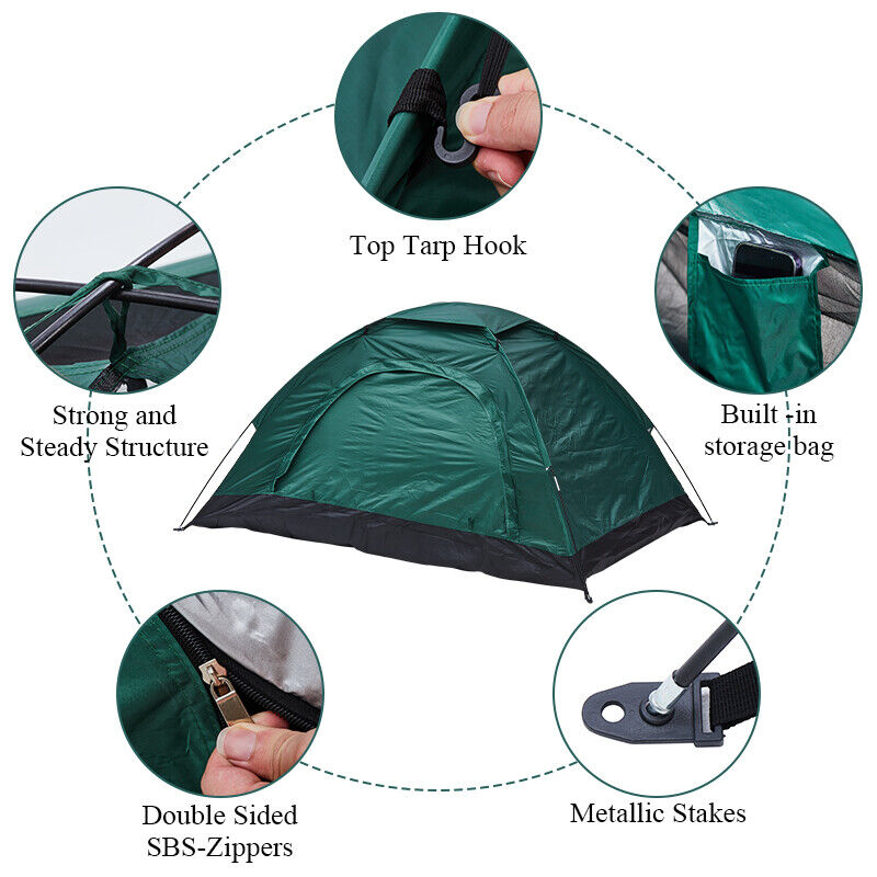 Camping Tents 2 Man Family Tent Fishing Hiking Outdoor Waterproof with Floor