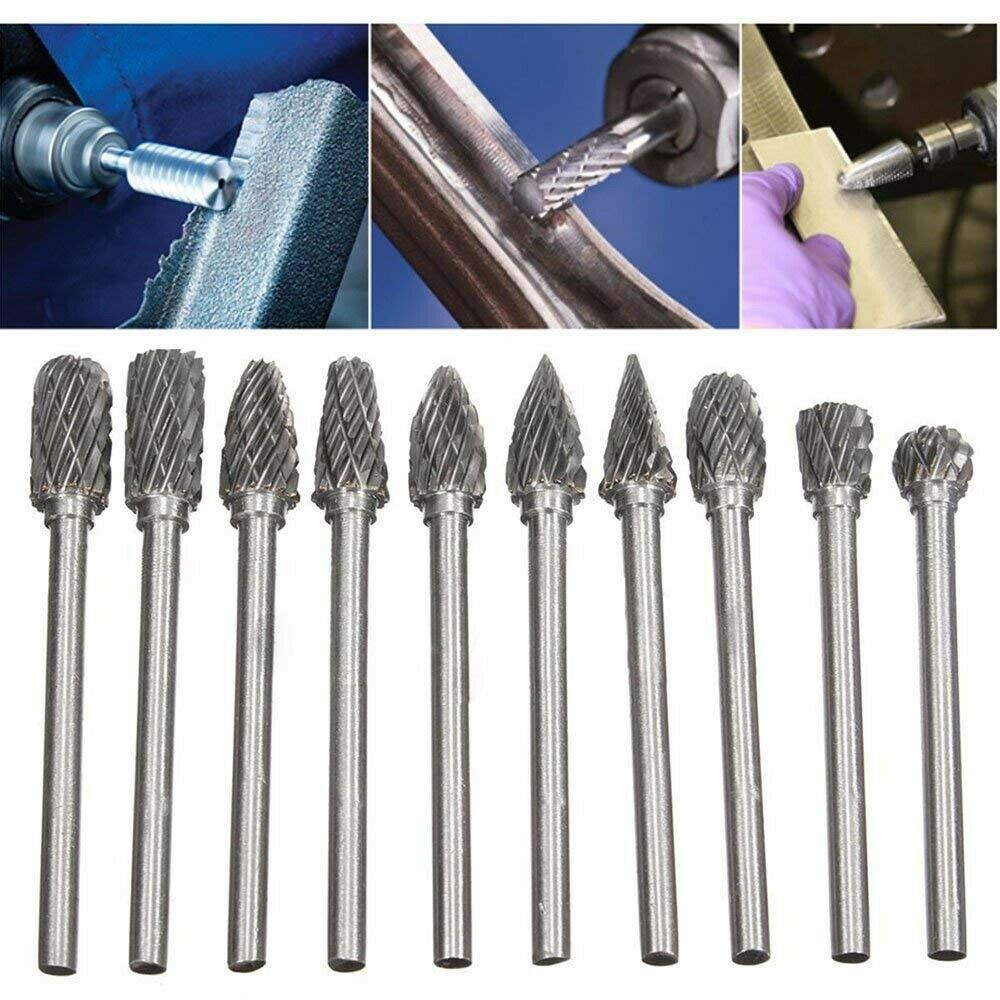 Carbide Burr Die Grinding Shank Tungsten Rotary Drill Set Metal CarvingBit Tool.