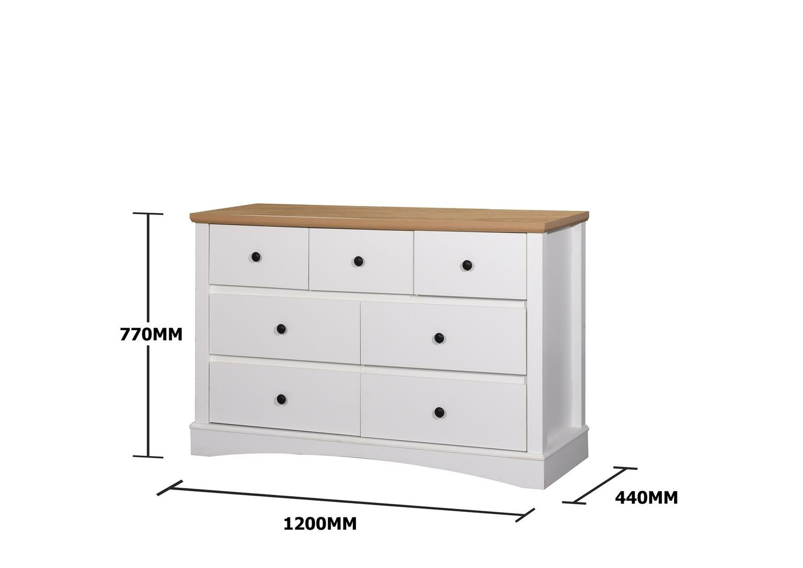 Carden Bedroom Chest of Drawers 7 Drawer 3+4 White & Oak Storage Cabinet