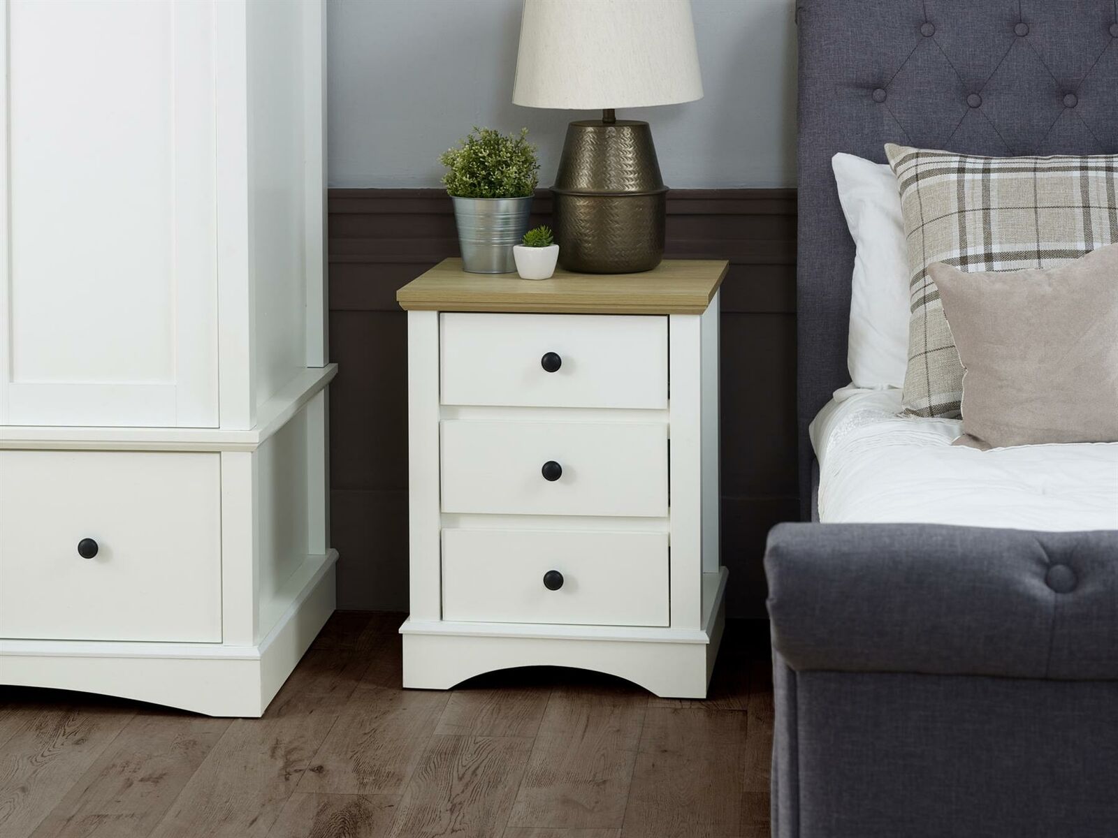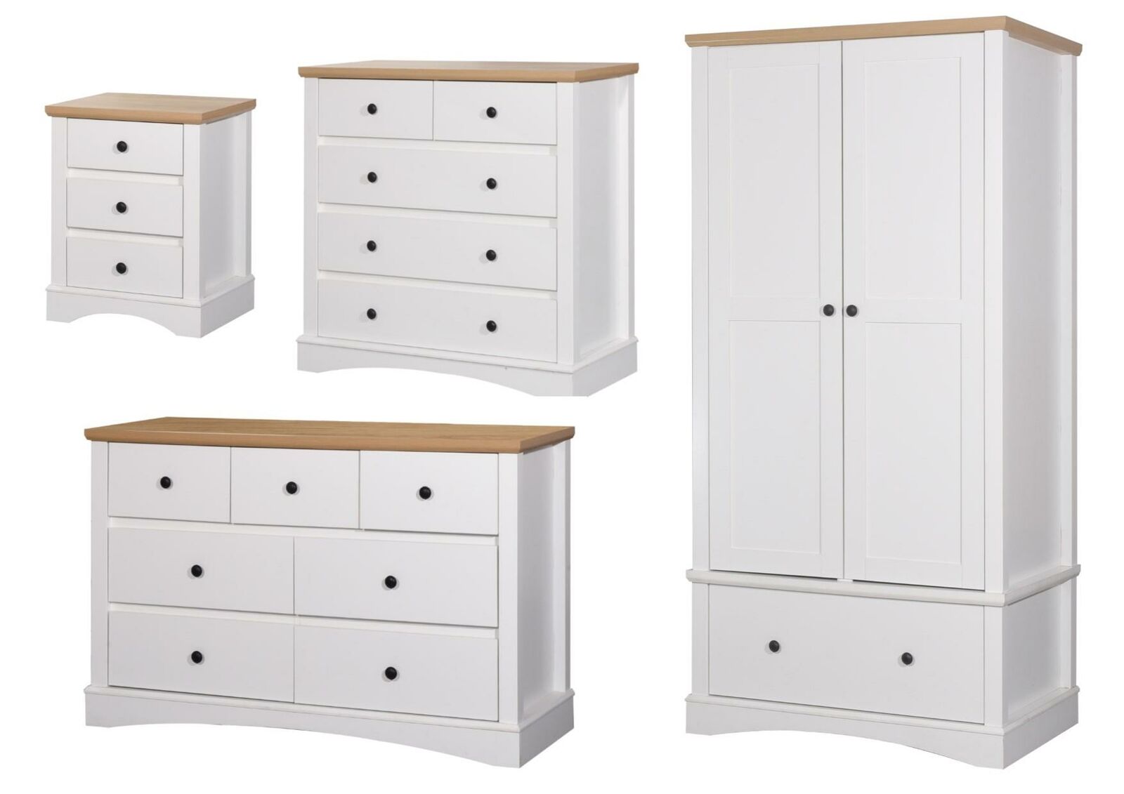 Set Includes: Wardrobe, Chest of Drawers, Bedside Table