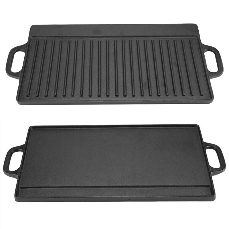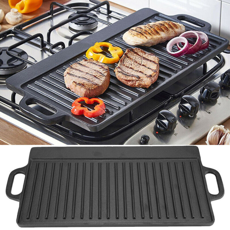 Cast Iron Grill Griddle Pan Double Sided Plate Baking Cooking Tray Bakeware Tool