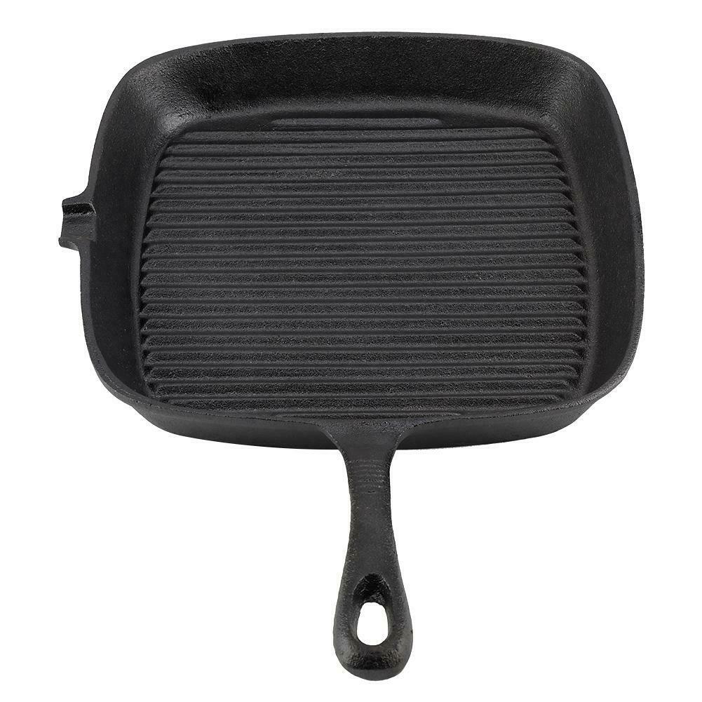 Cast Iron Pre Seasoned Skillet Frying Pan Griddle BBQ Grill Non Stick Cookware