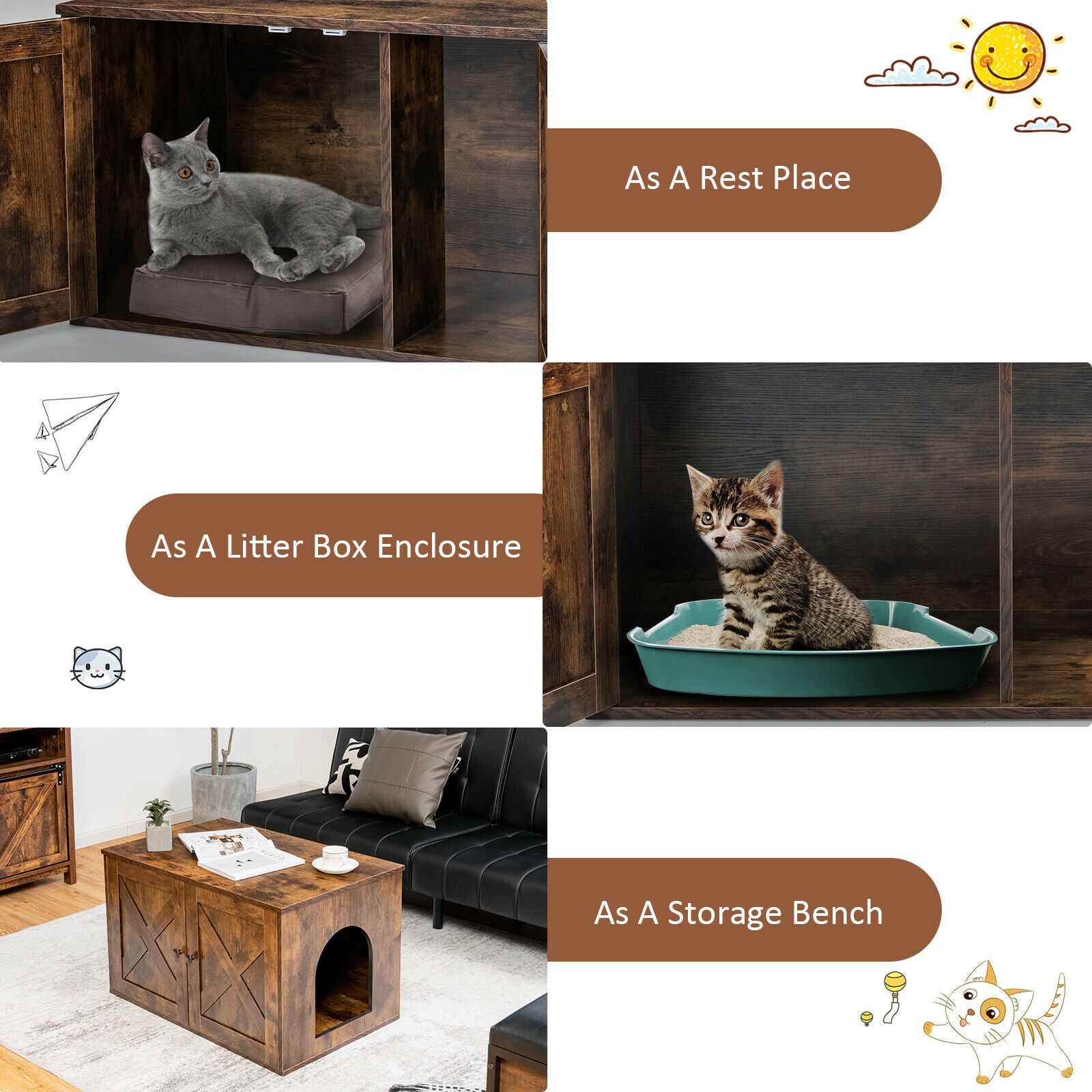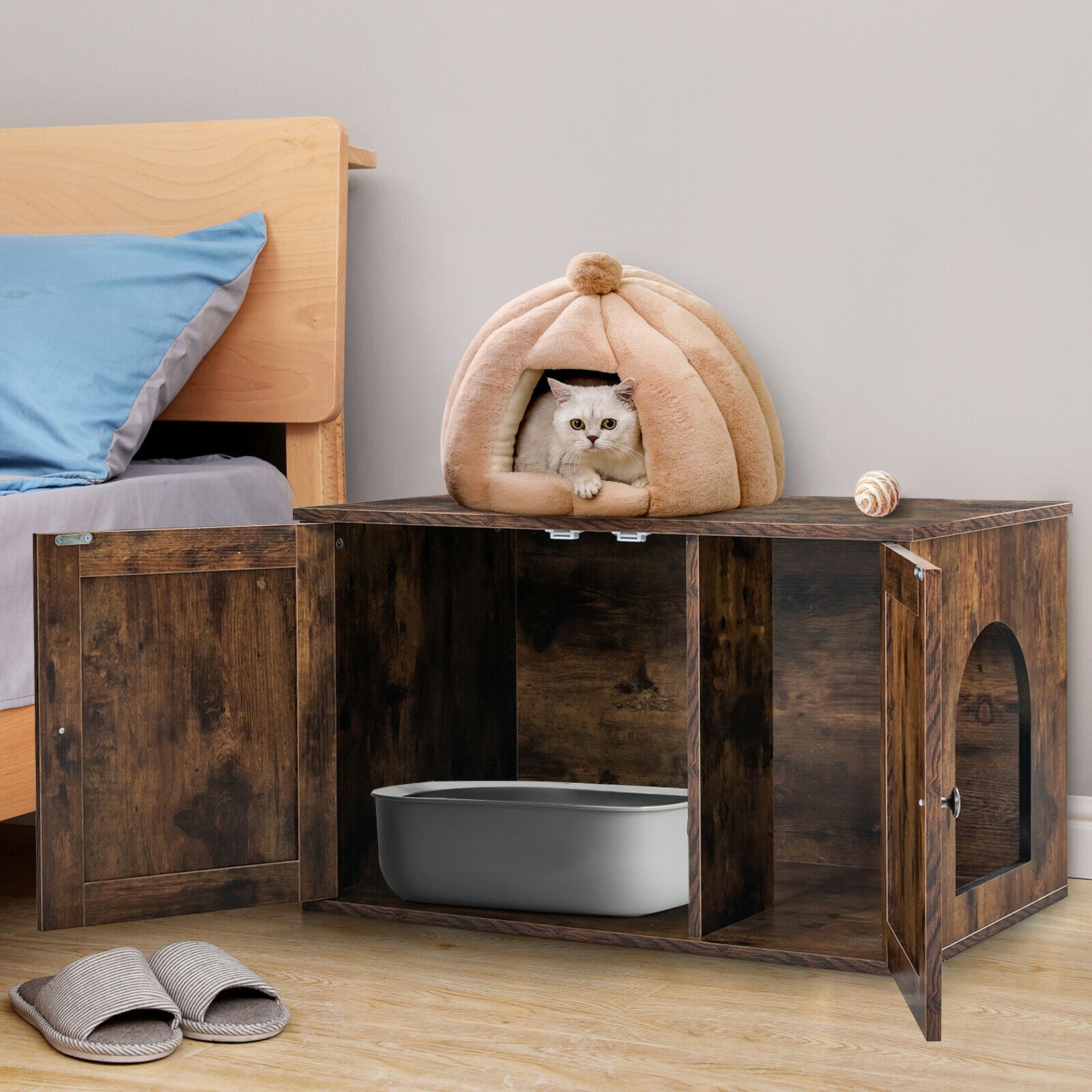 Cat Litter Box Enclosure Privacy Cat Washroom W/ Sided Entrance Hole Pet House