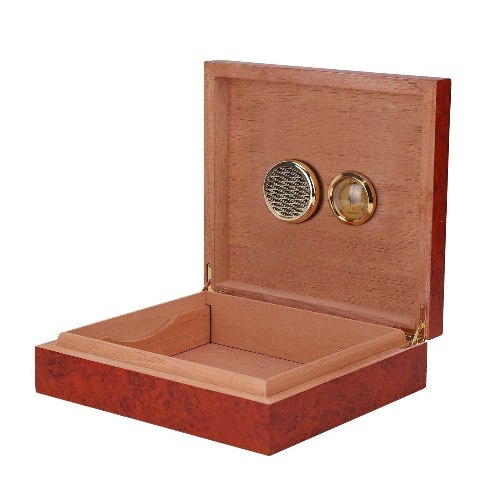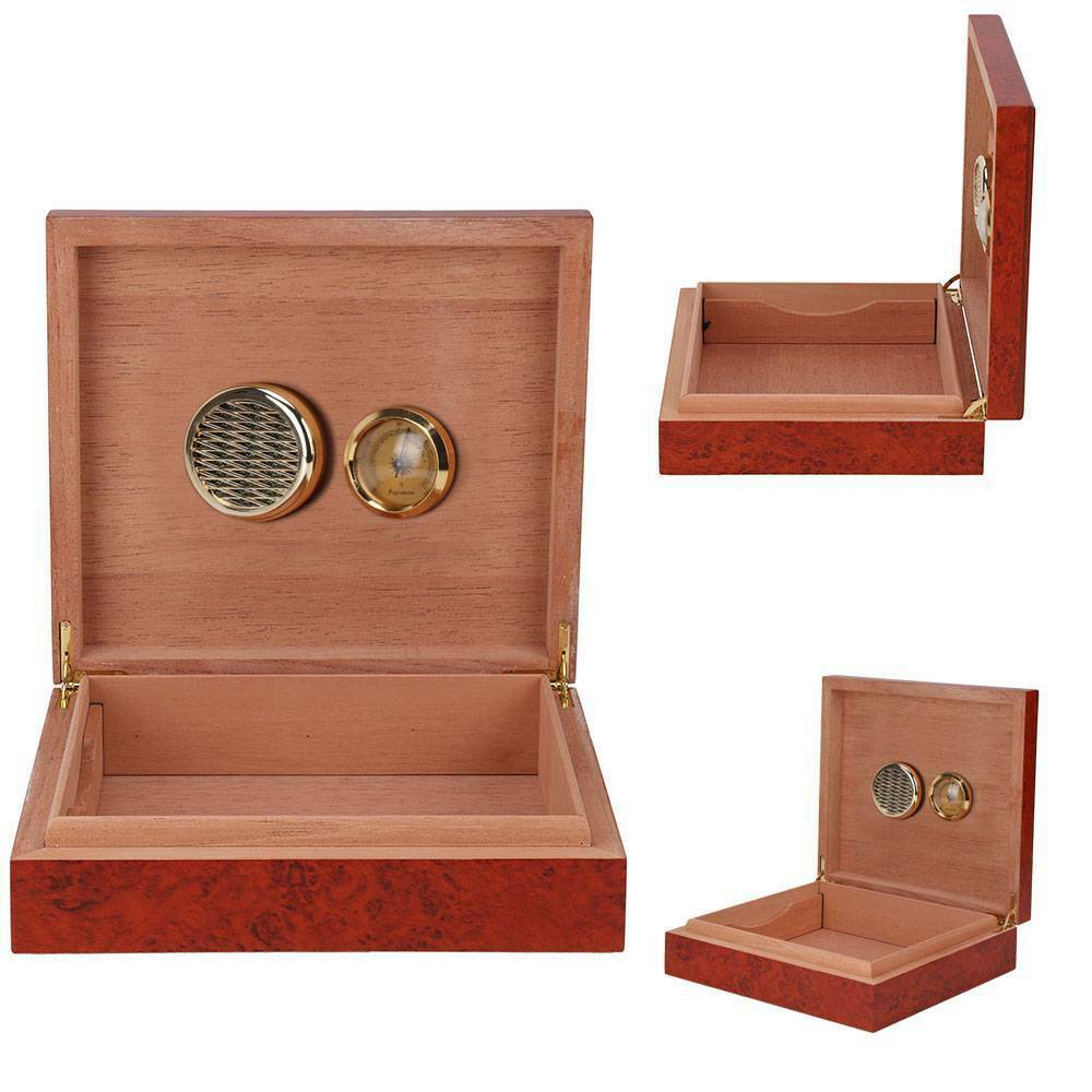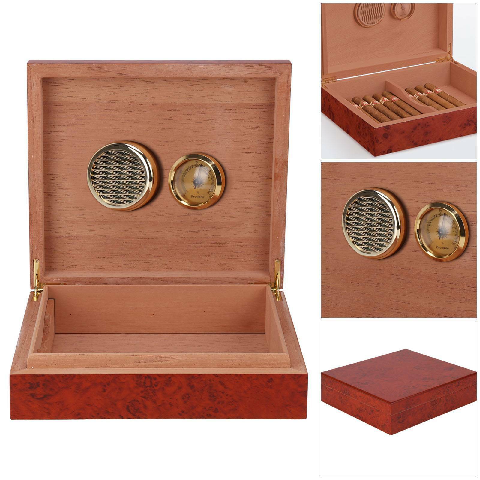 Cedar Wood Wooden Lined Cigar Humidor Humidifier Hygrometer Case Box Brown NEW