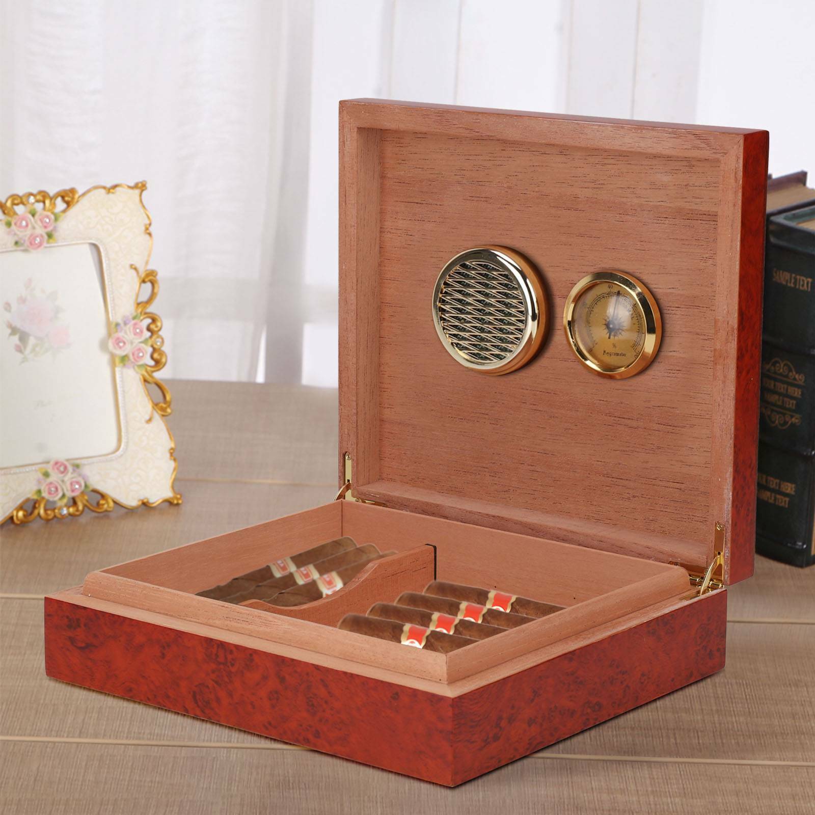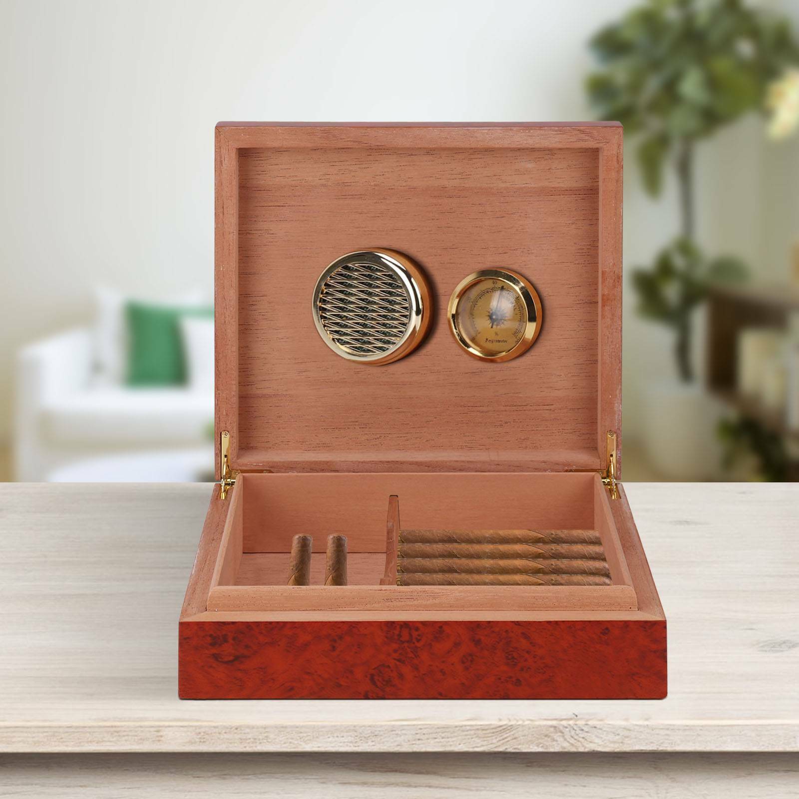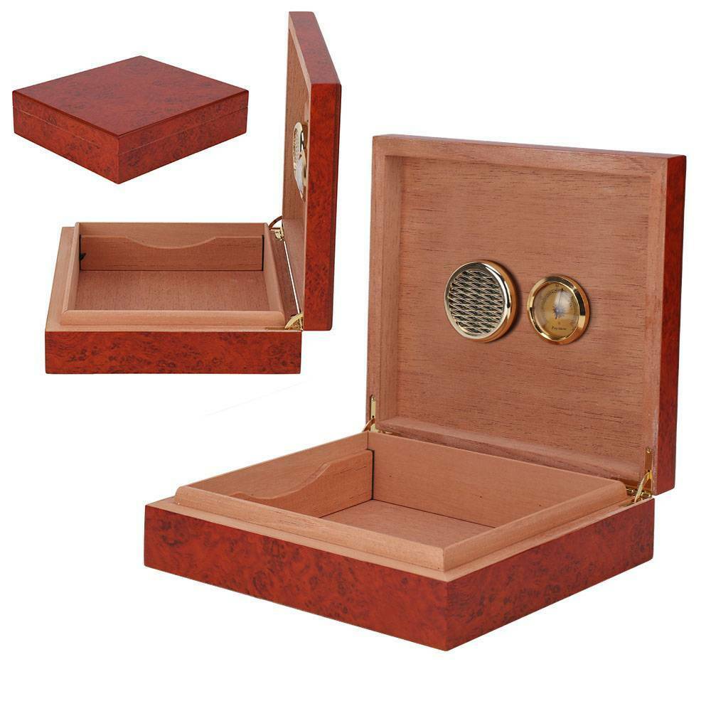 Cedar Wood Wooden Lined Cigar Humidor Humidifier Hygrometer Case Box Brown NEW