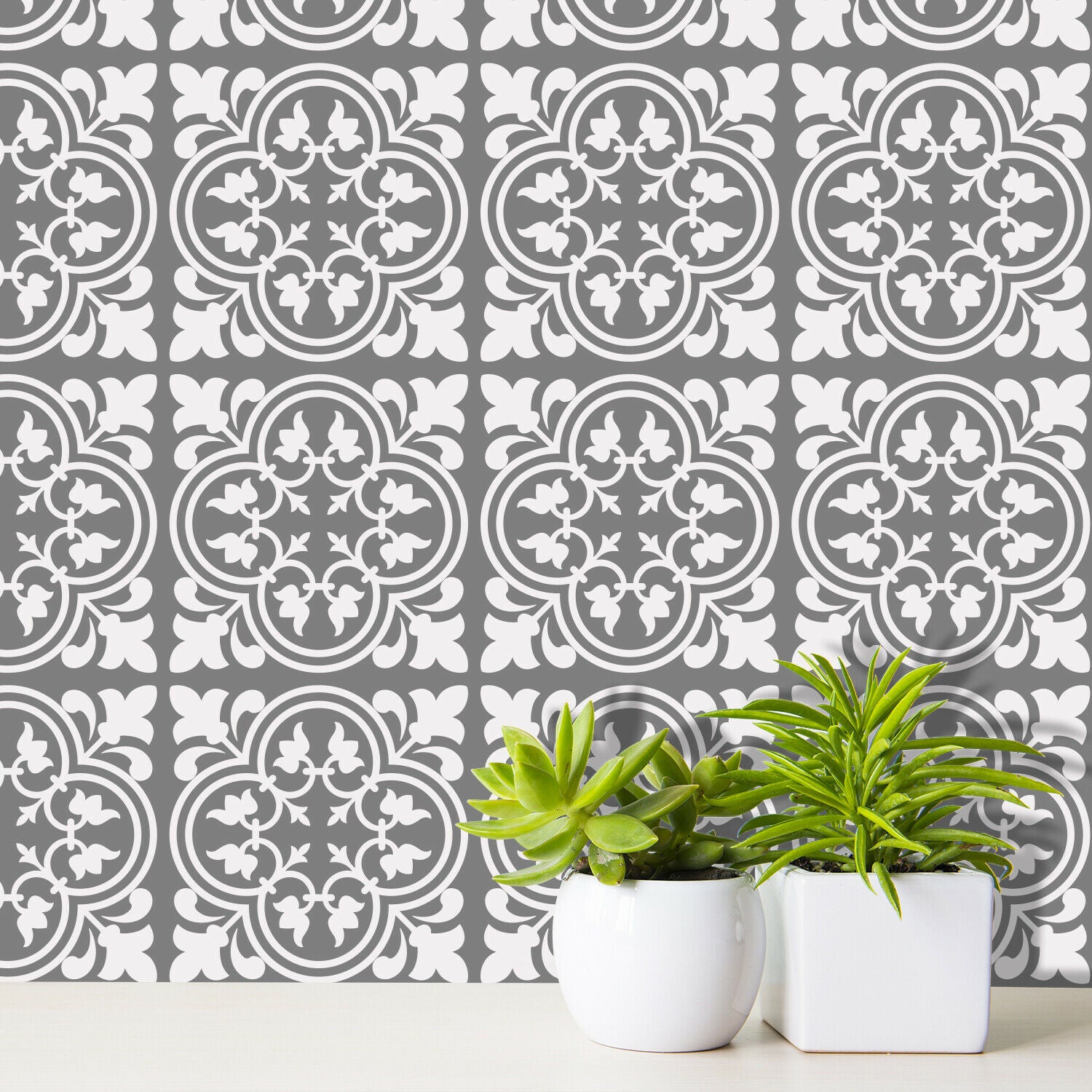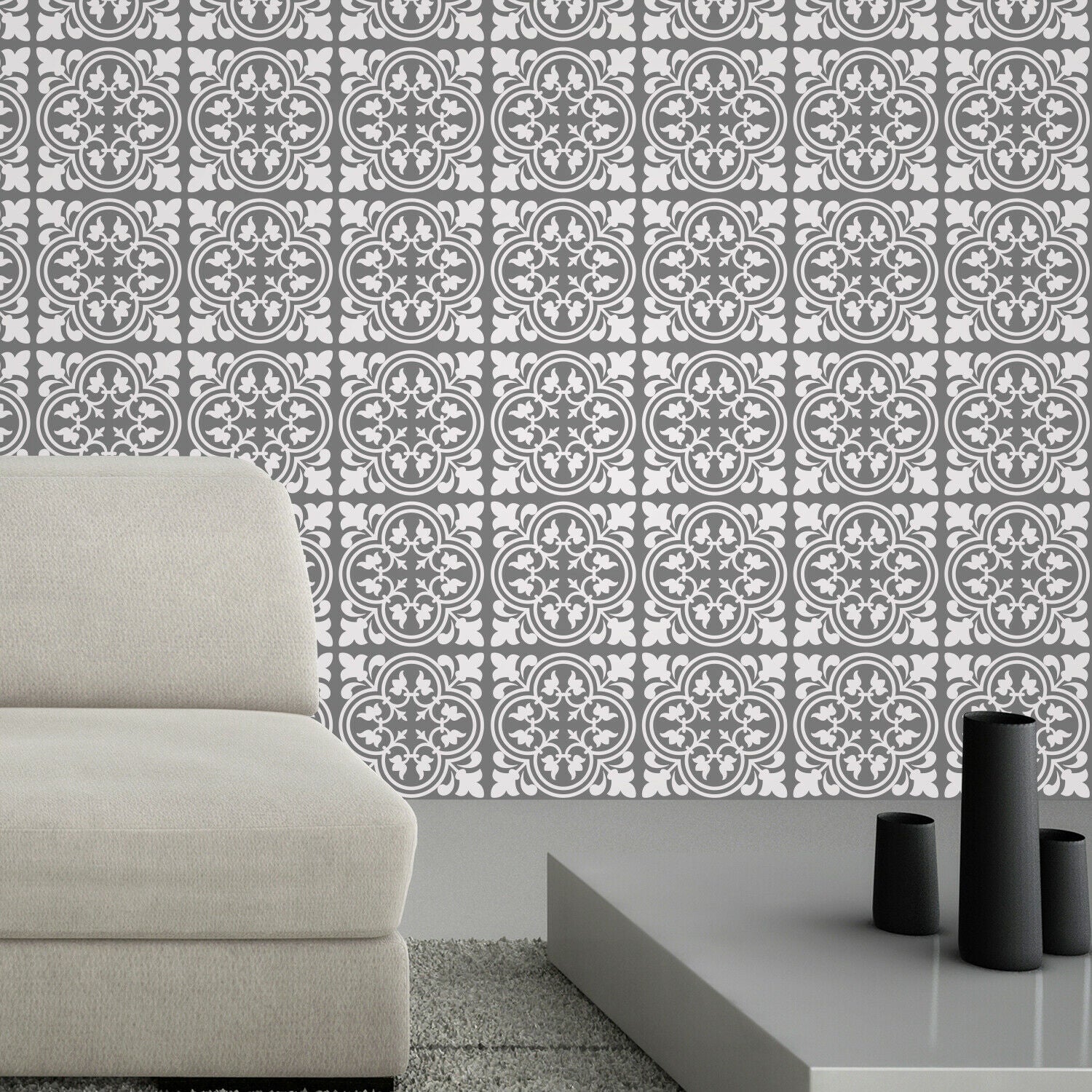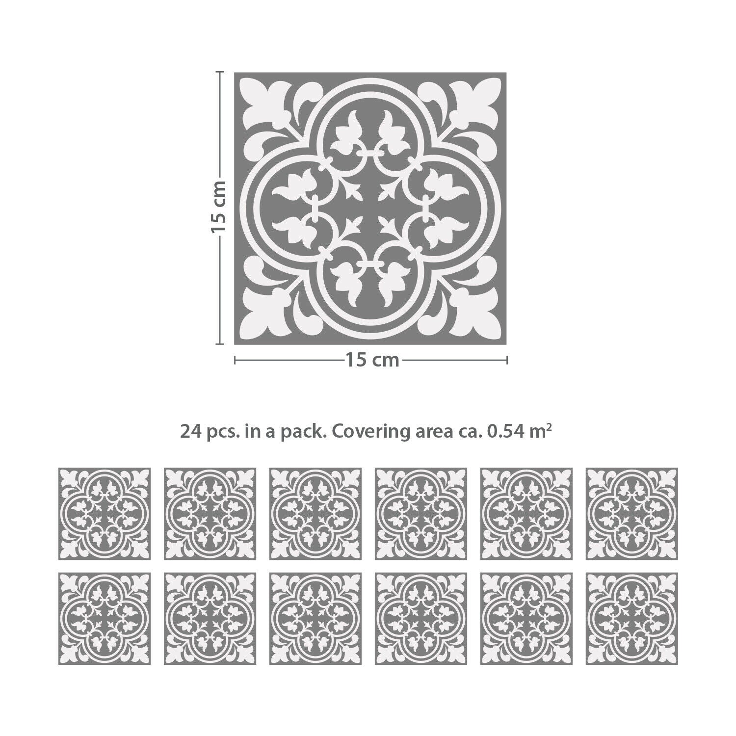 Cement Antique Floral Tulip Pattern Tiles Wall Stickers Set 2 - 15 x 15 cm 24pcs