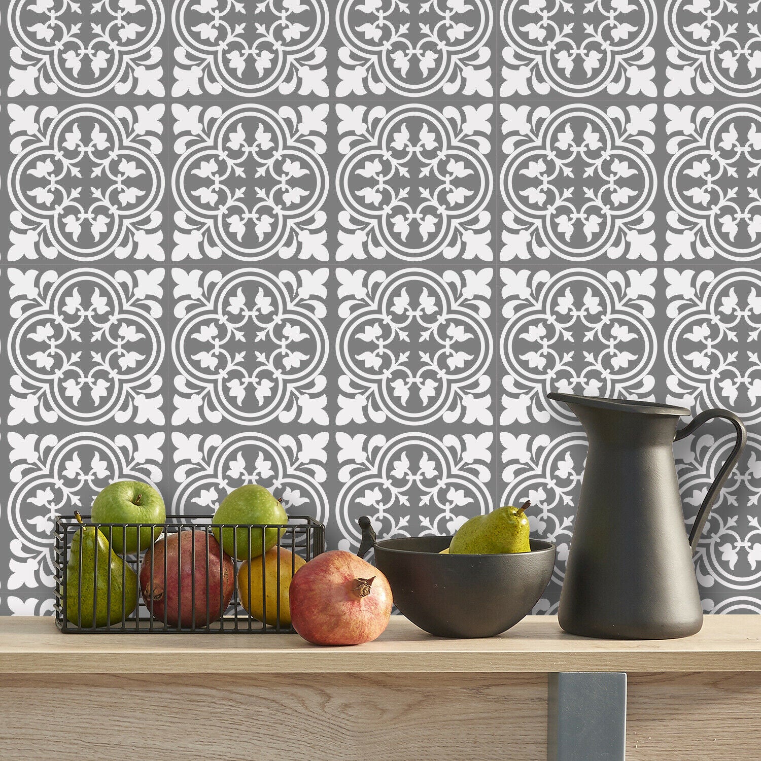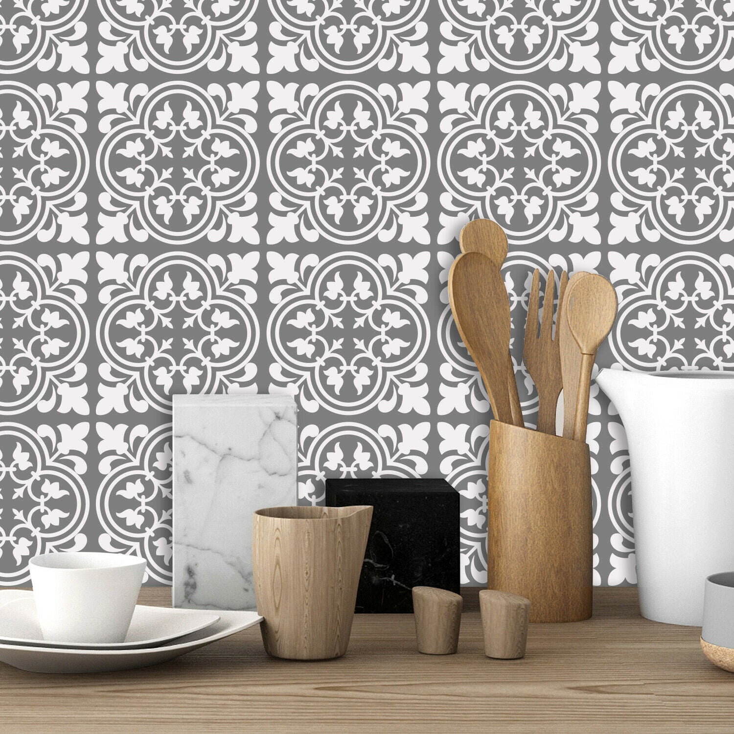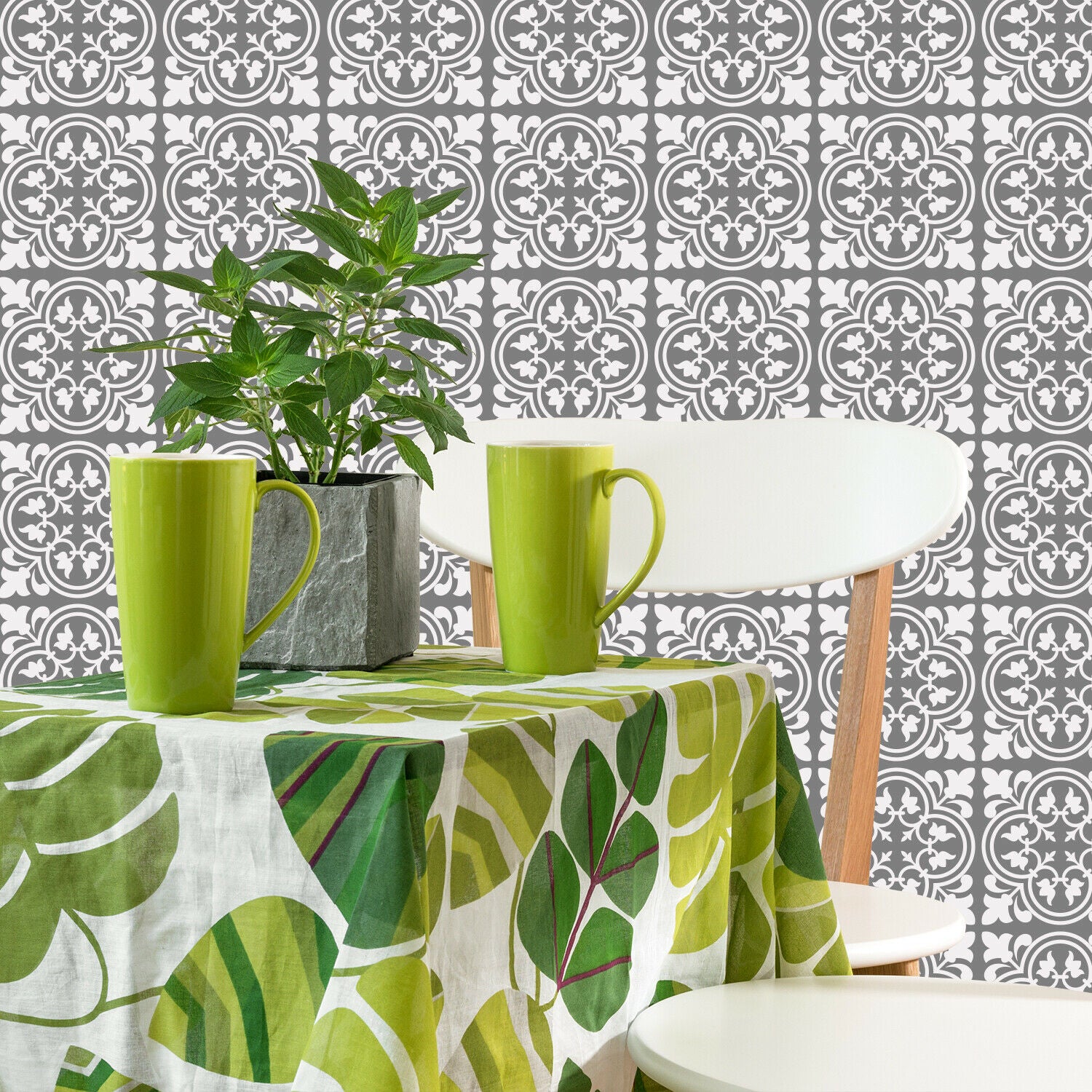 Cement Antique Floral Tulip Pattern Tiles Wall Stickers Set 2 - 15 x 15 cm 24pcs