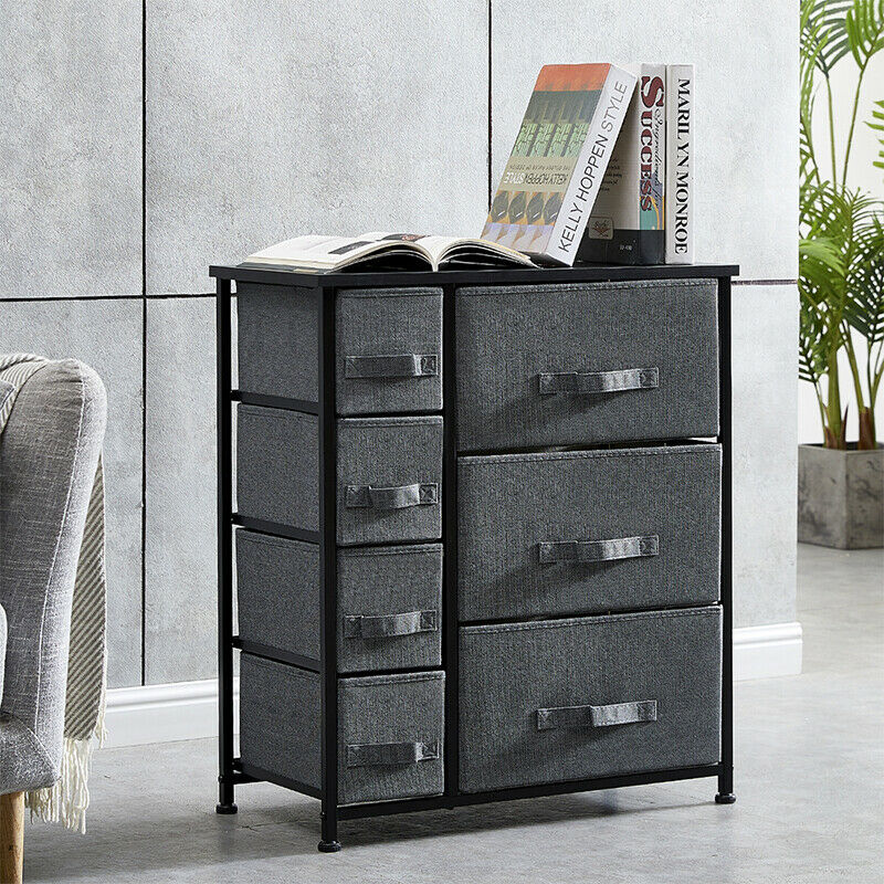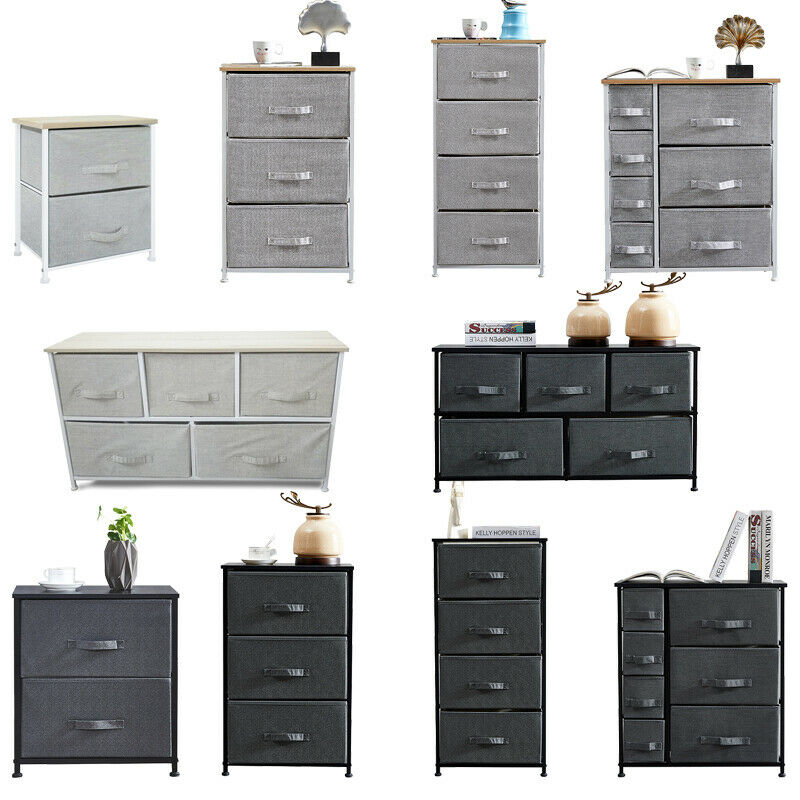 Chest of 2/3/4/5/7 Drawers Fabric Storage Cabinet Side Table Standing Home Grey