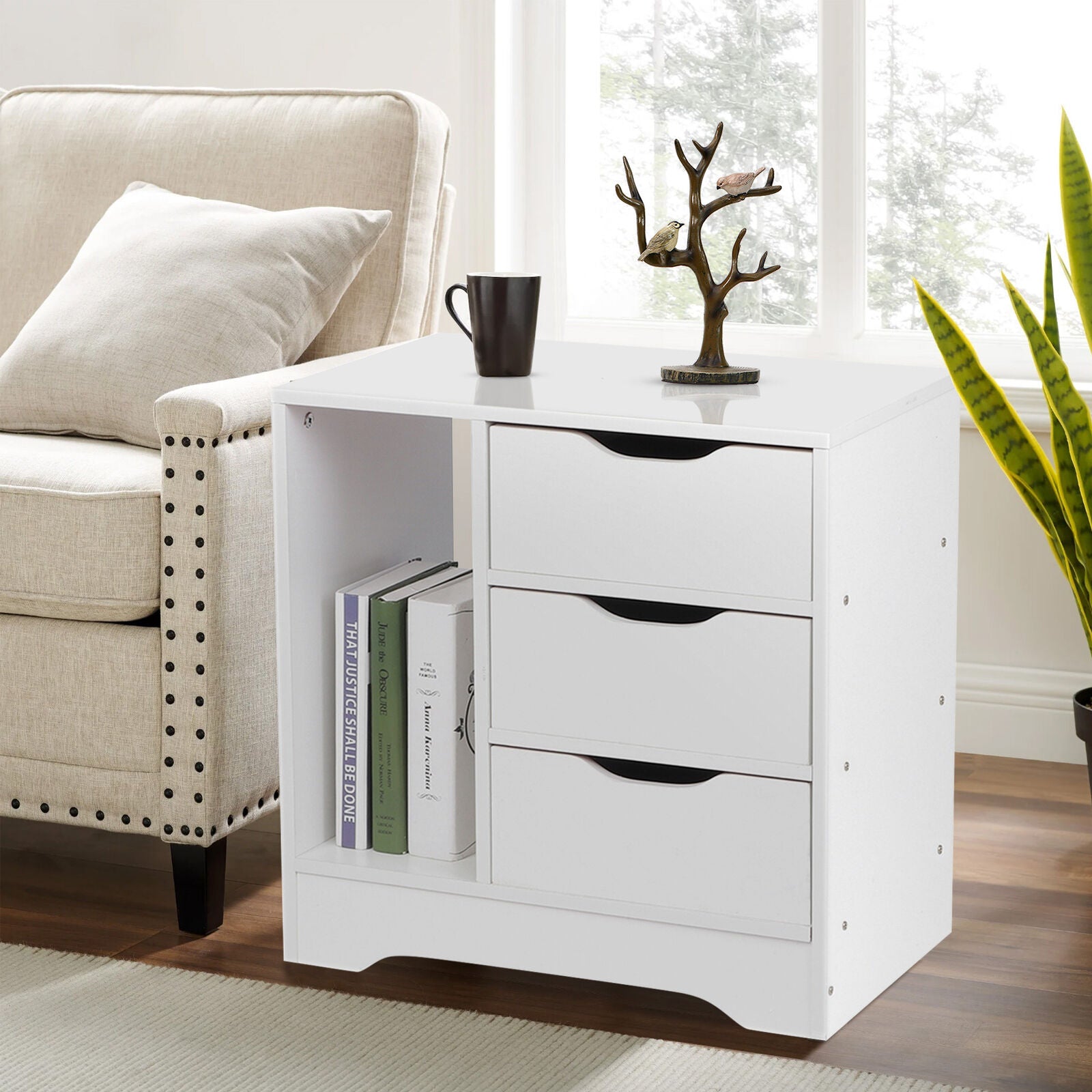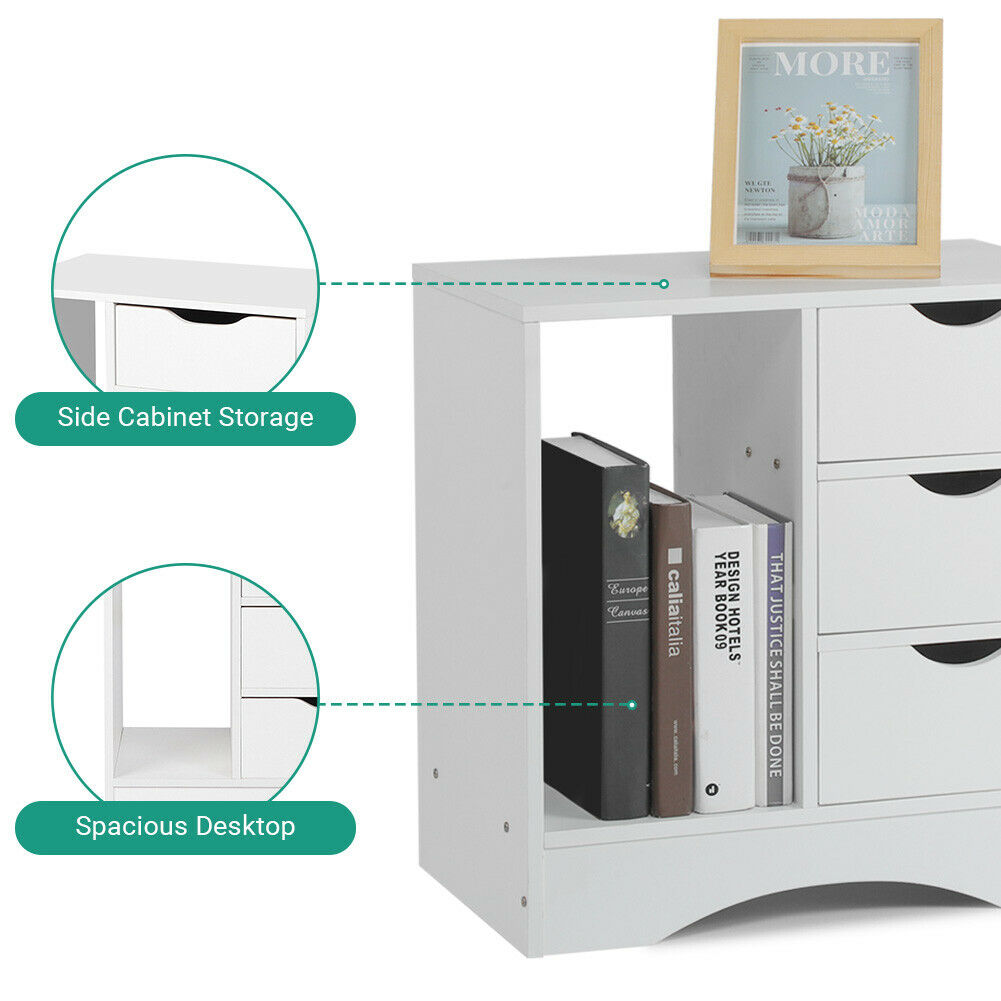 Chest of 3 Drawers Bedside Table Cabinet Nightstand Storage Side Cupboard White