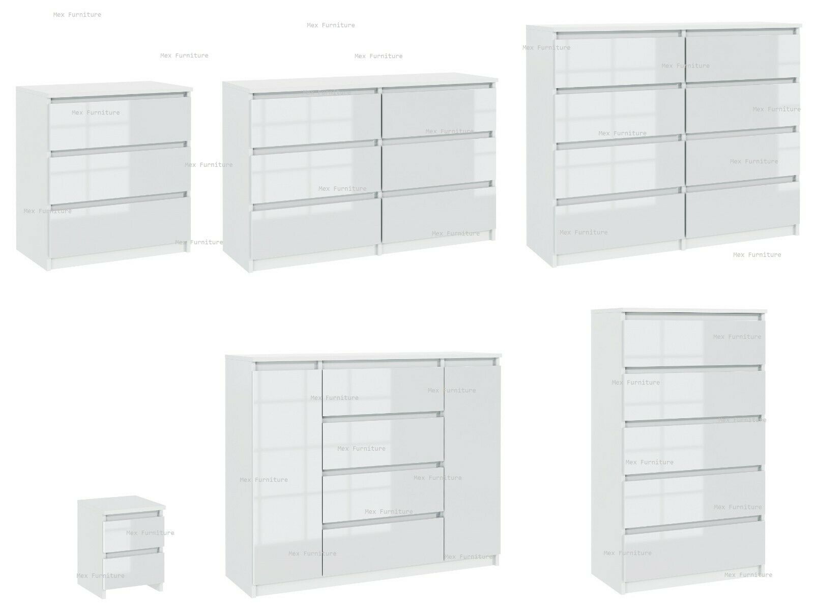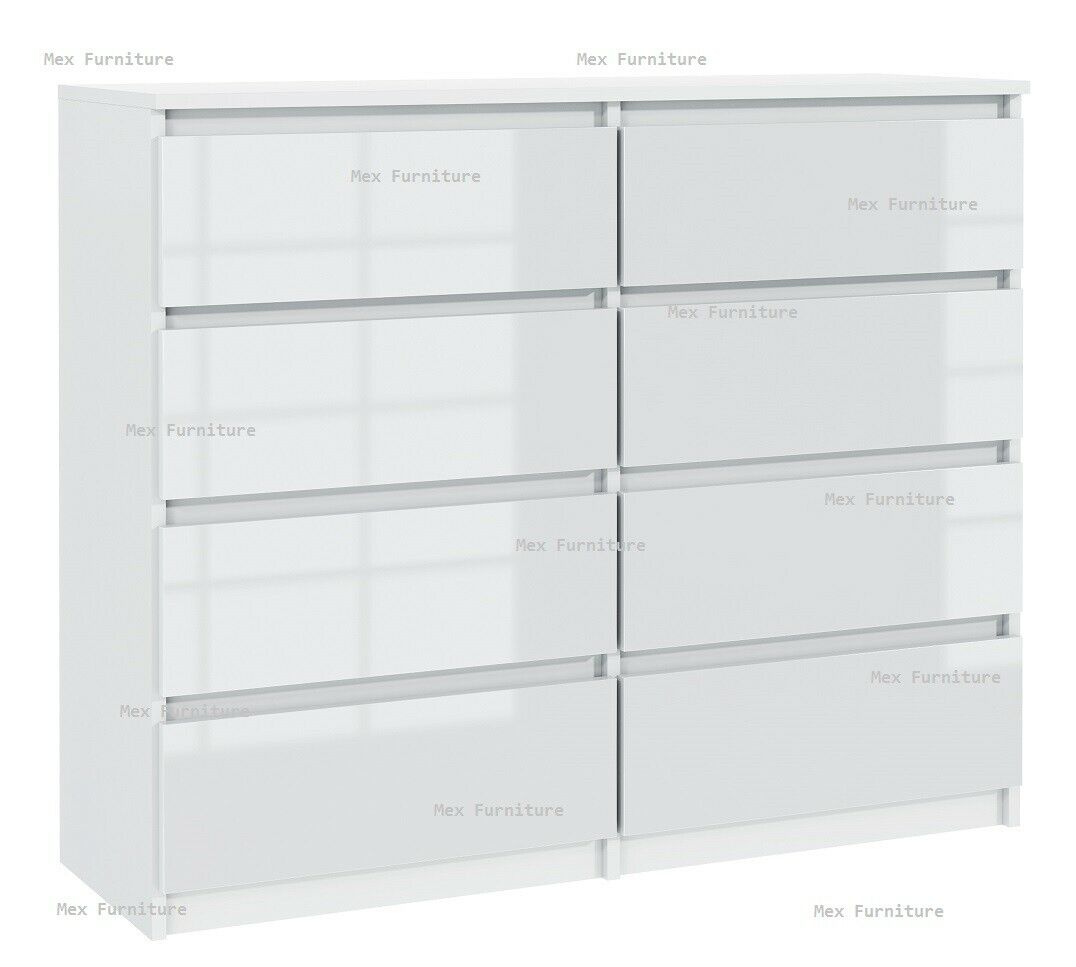 Chest of 8 Drawers Sideboard TV unit cabinet storage White Gloss Fronts