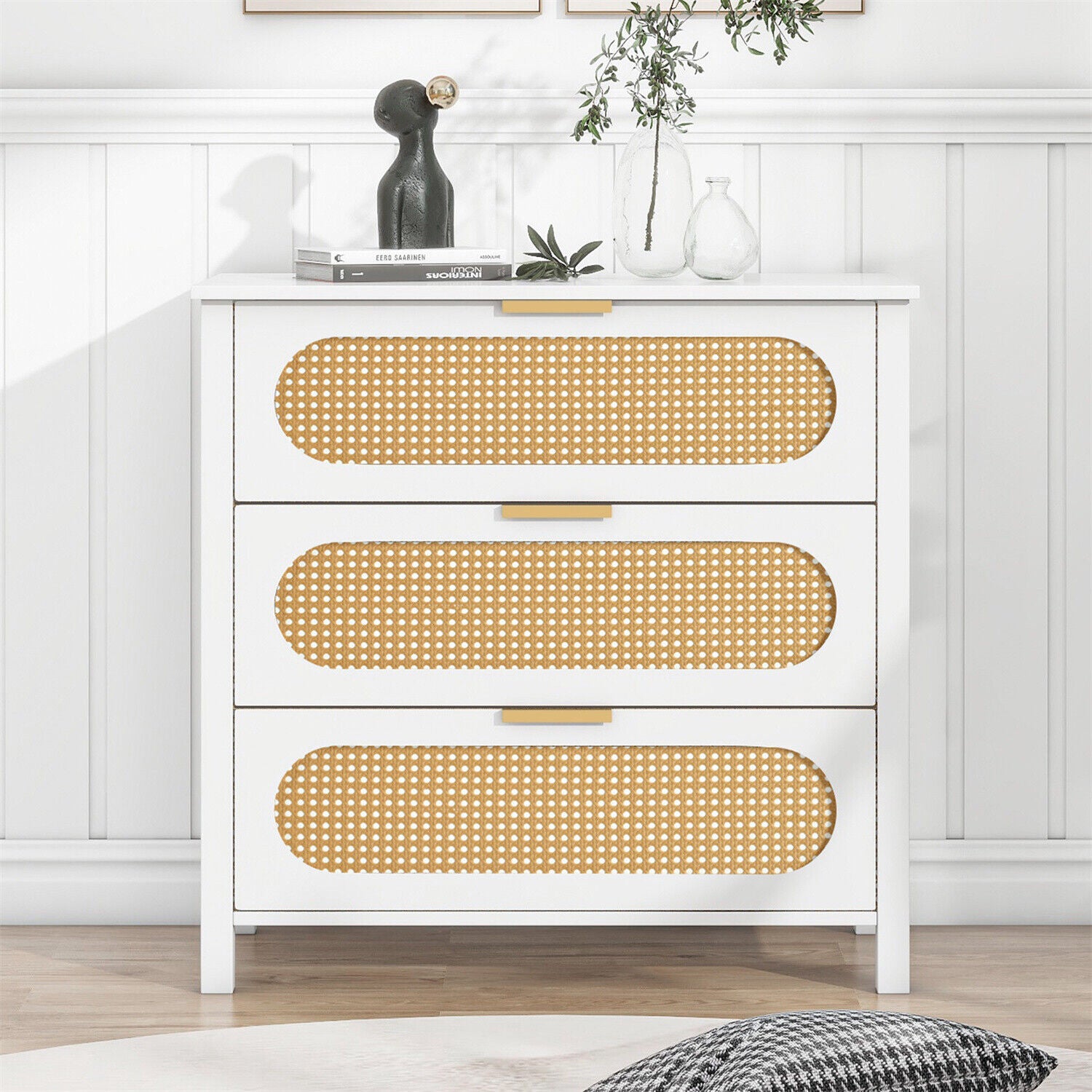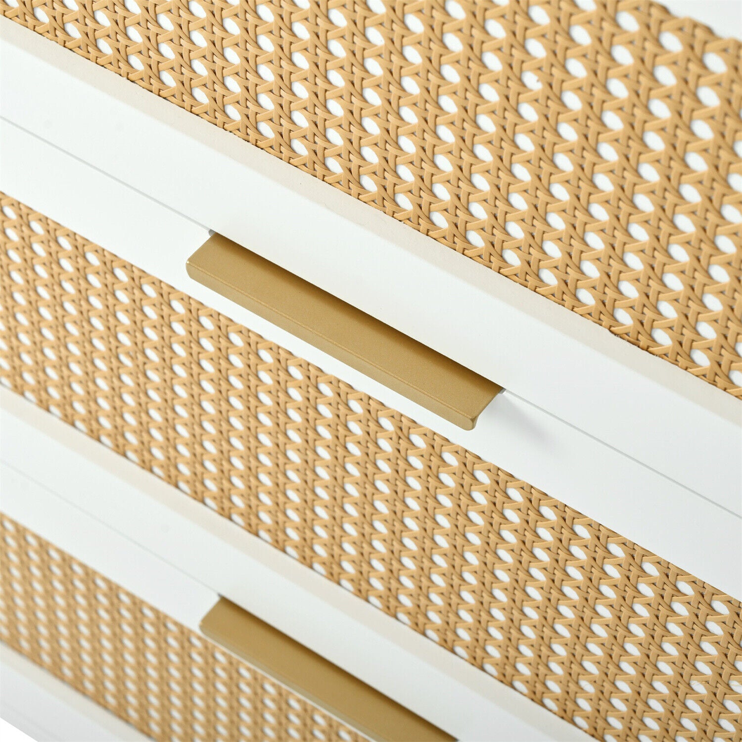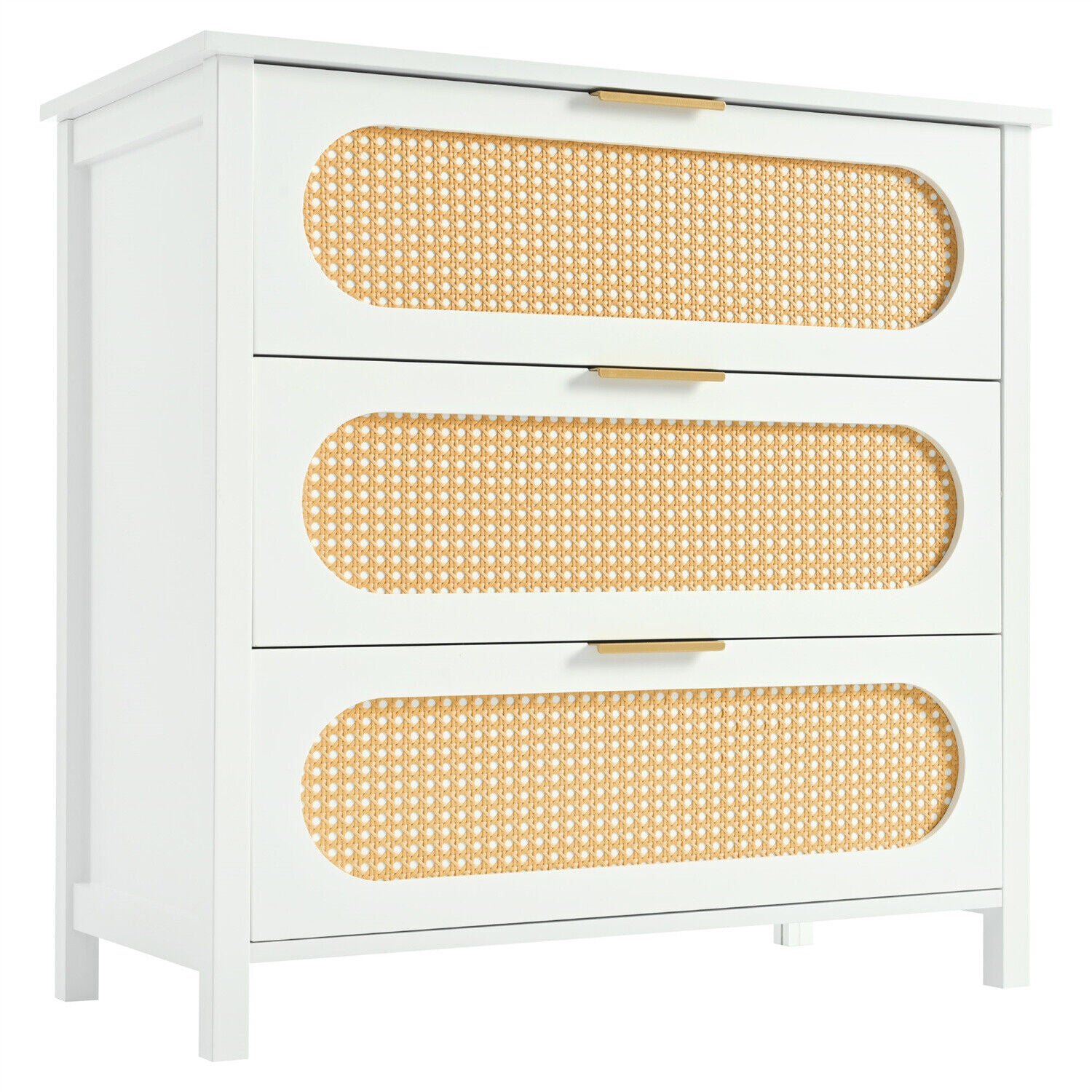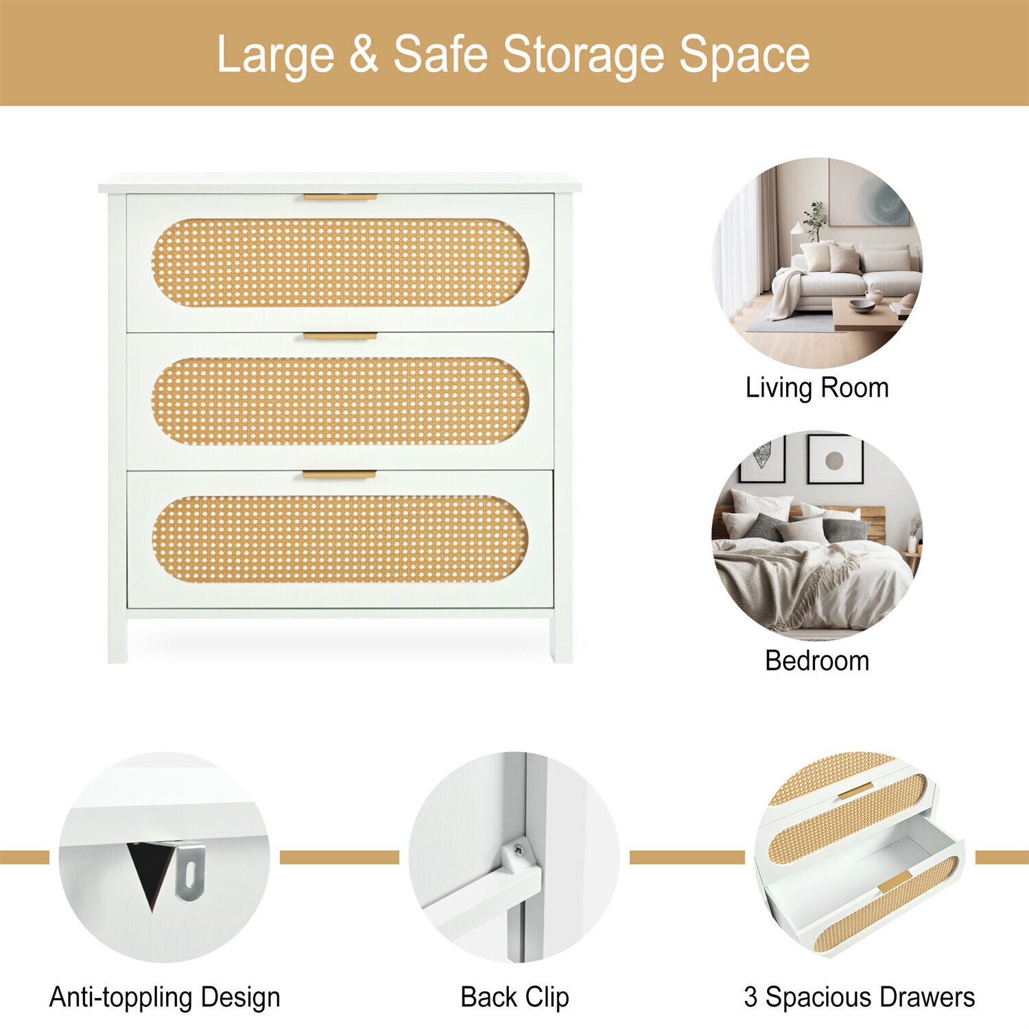 Chest of Drawers 3 Rattan Drawers White Storage Cabinet Home Bedroom Furniture