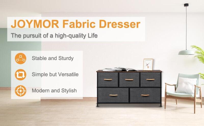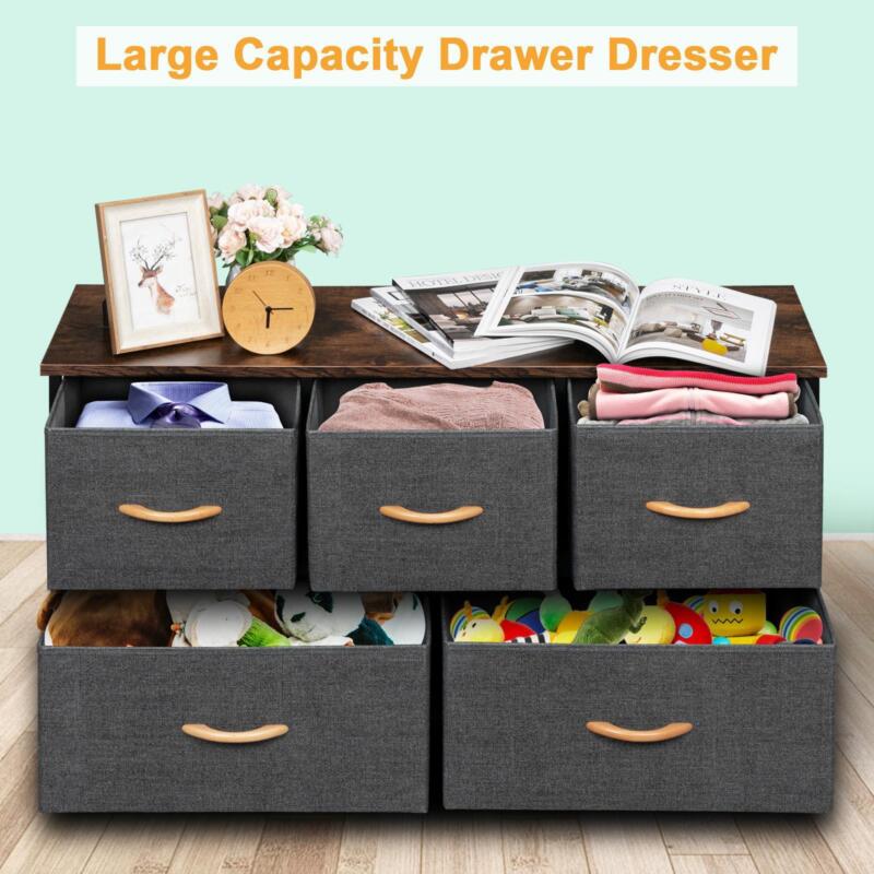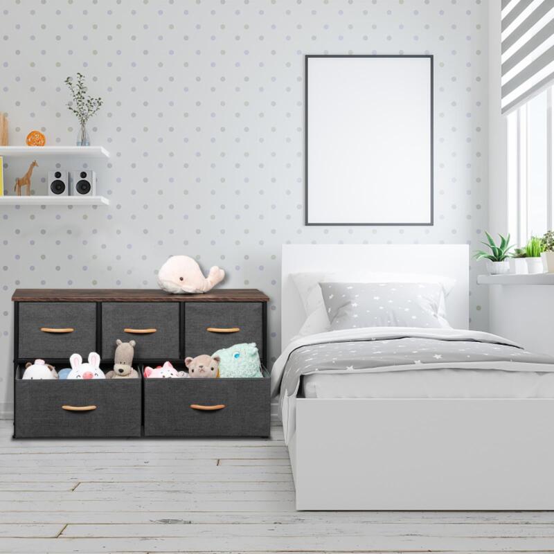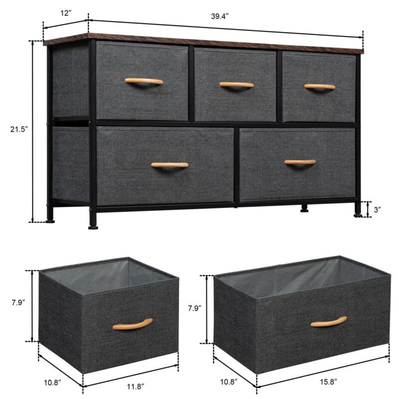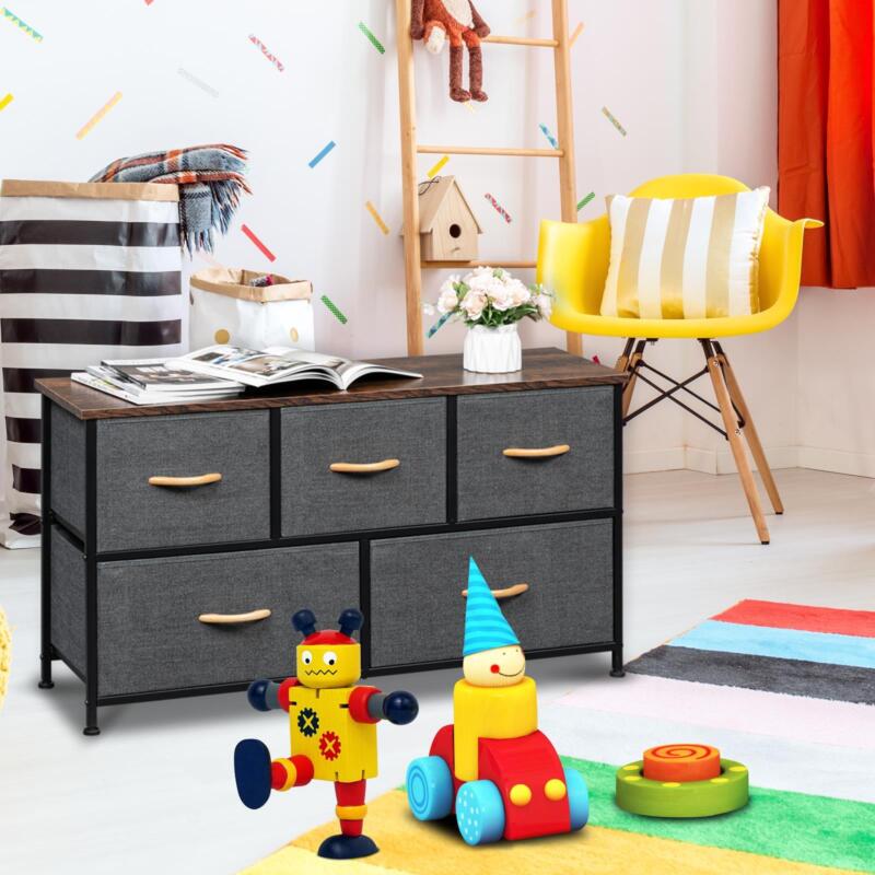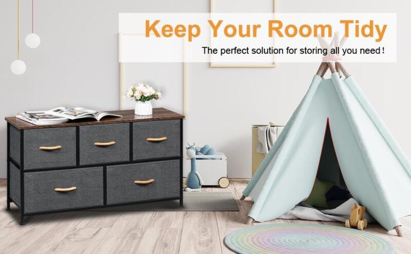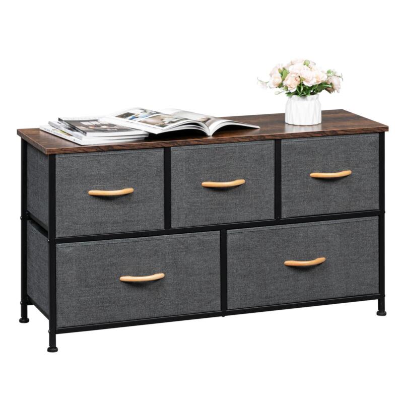 Chest of Drawers 5 Fabric Drawers Metal Frame Bedroom Storage Cabinet Dark Grey