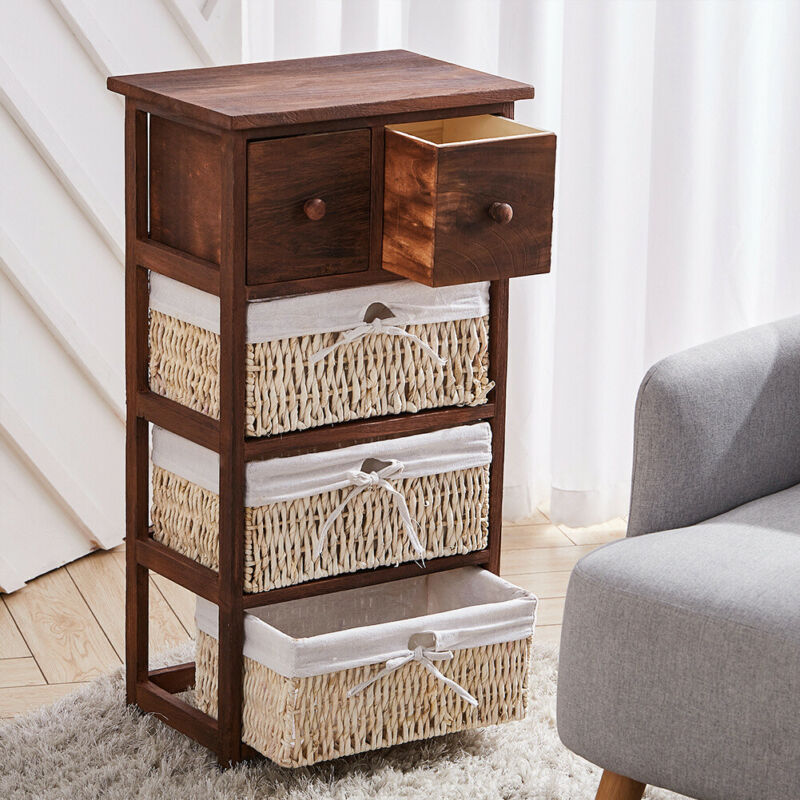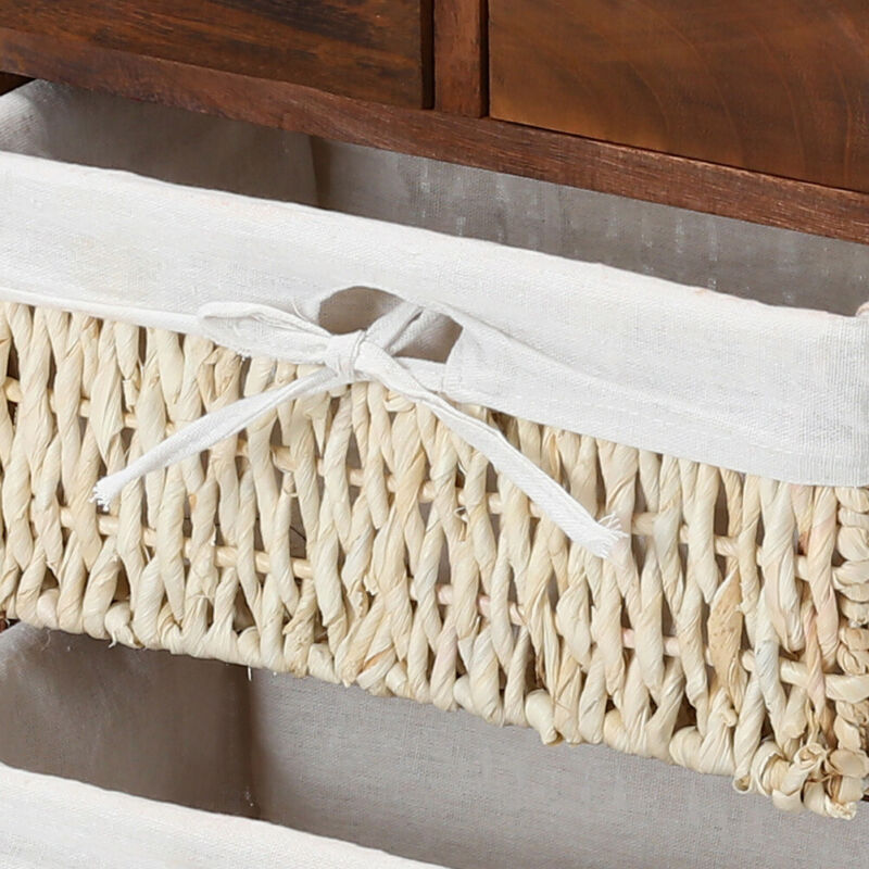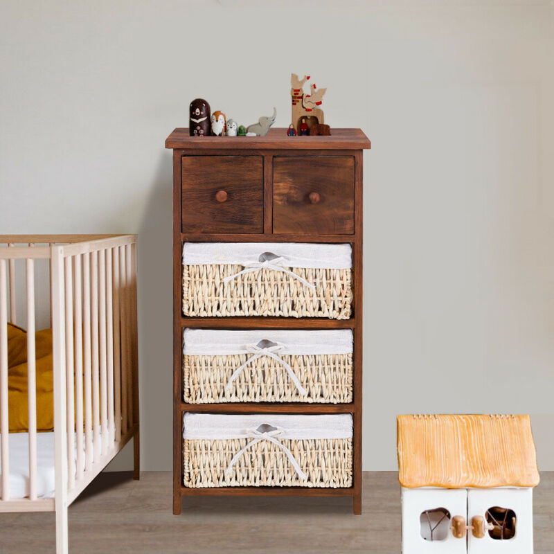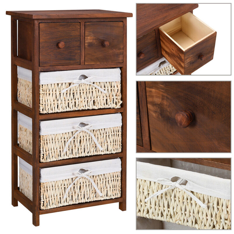 Chest of Drawers Cabinet Bedroom 2 Drawer 3 Baskets Wooden Wicker Living Room