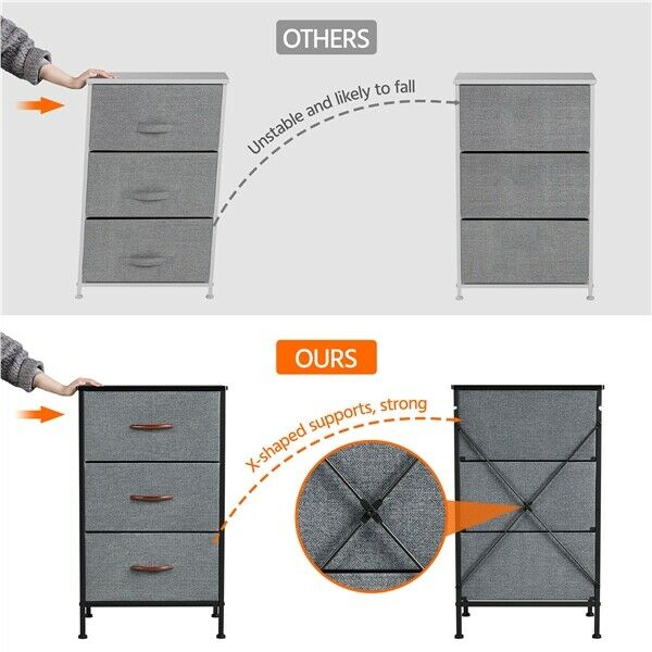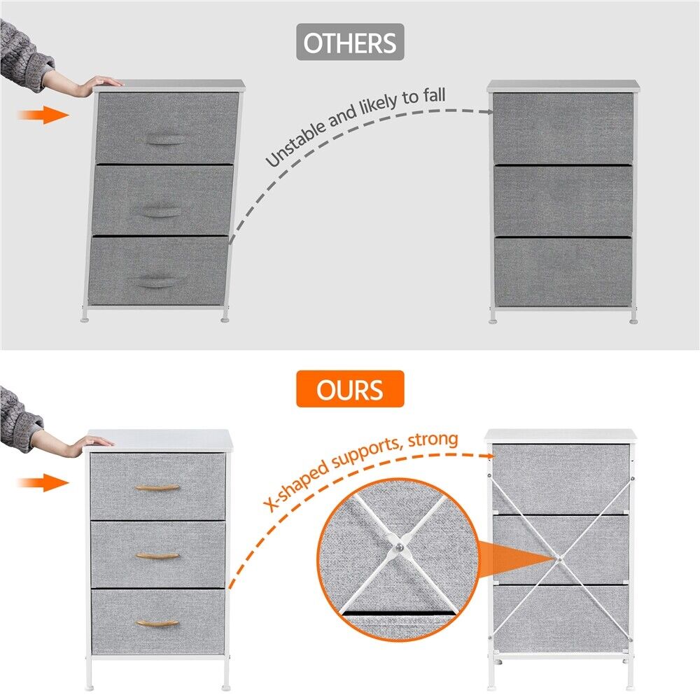 Chest of Drawers Fabric Vertical Dresser with 3 Drawers, Bedroom Storage Units