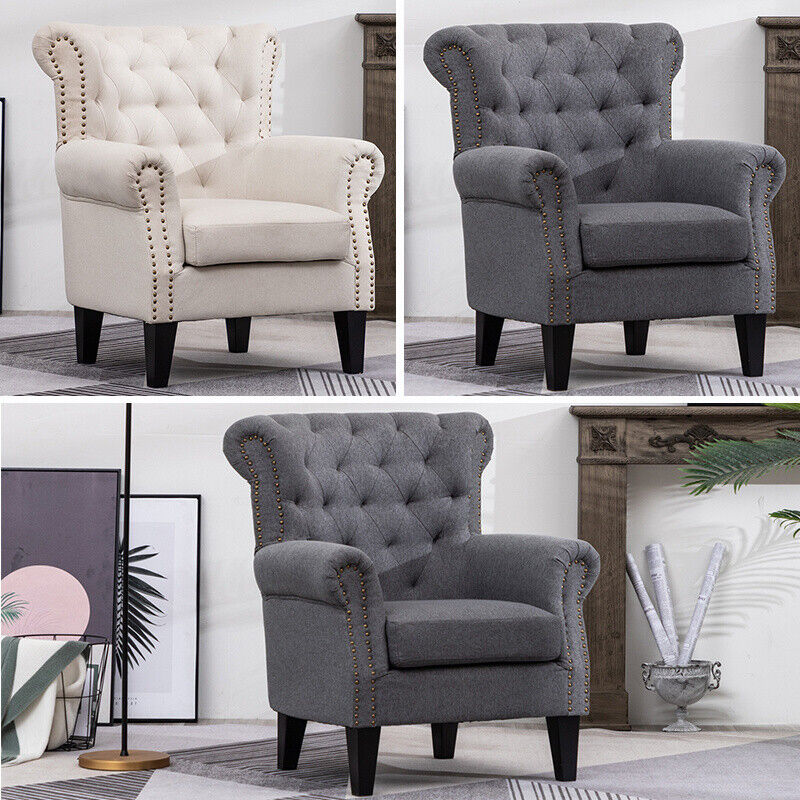 Chesterfield Tiger Armchair Wing Back Button Chair Bedroom Lounge Fireside Sofa
