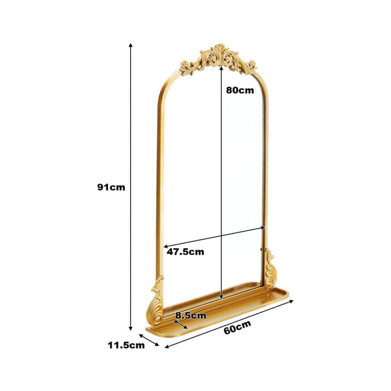 Chic Large Arched Wall Mounted Mirror W/Shelf Bathroom Makeup Mirror Metal Frame