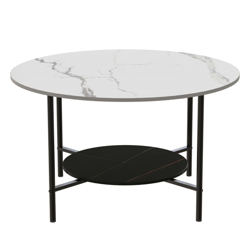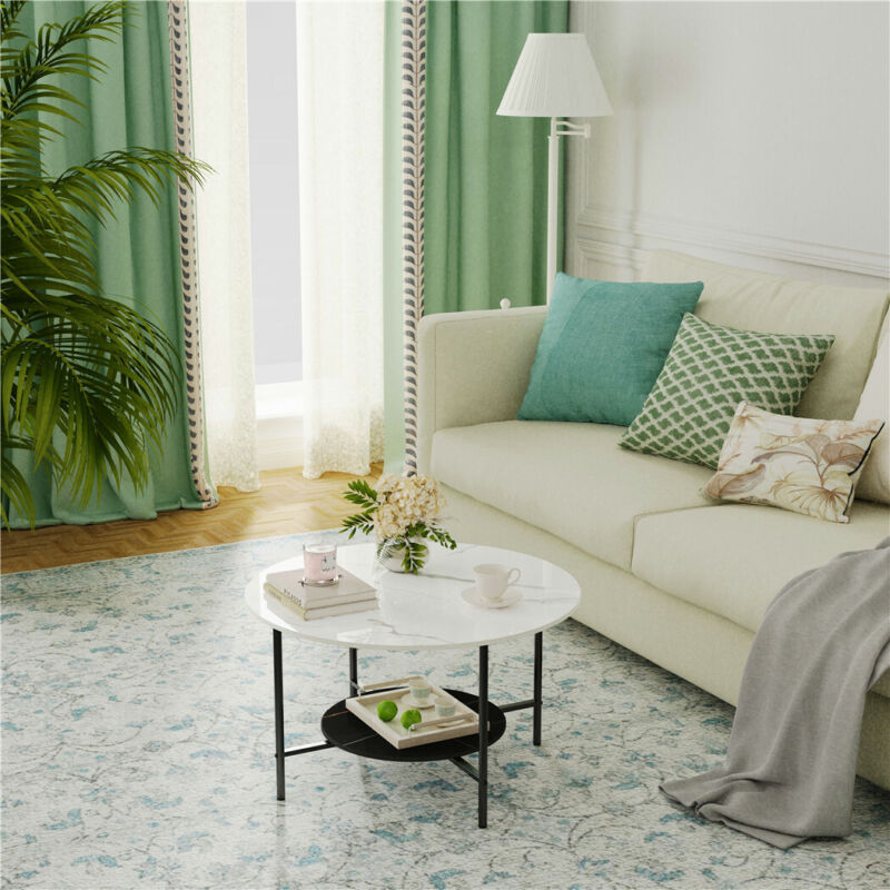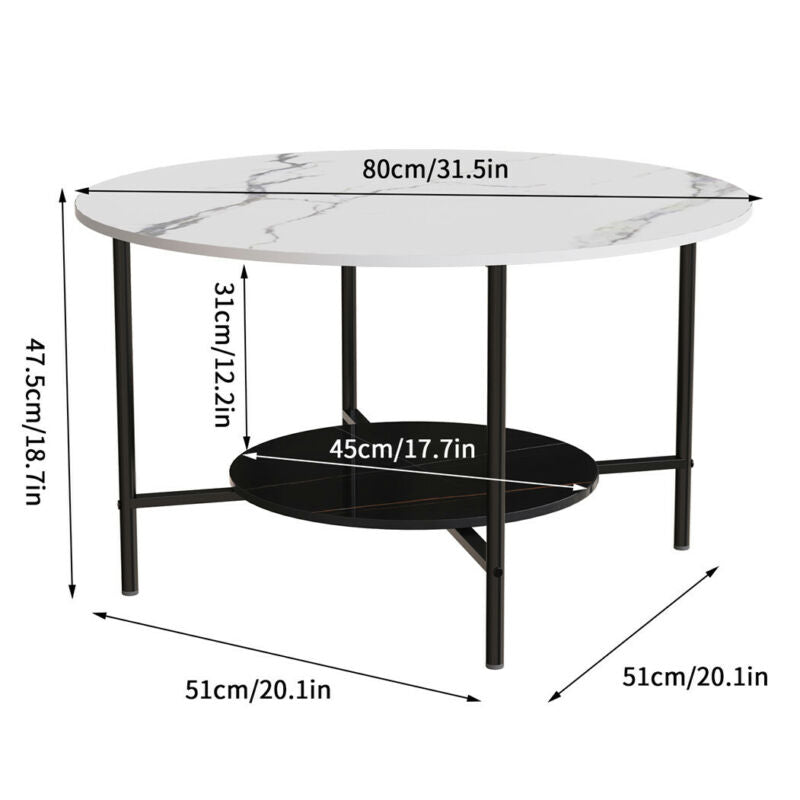 Chic Round Marble Coffee Tea Table Living Room Center Table with Storage Shelf
