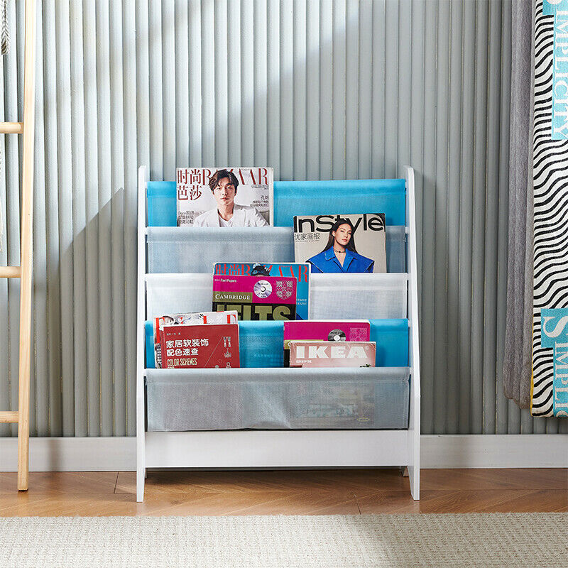 Children Bookshelf Kids Sling Book Rack with Storage Bins Toys Organizer White