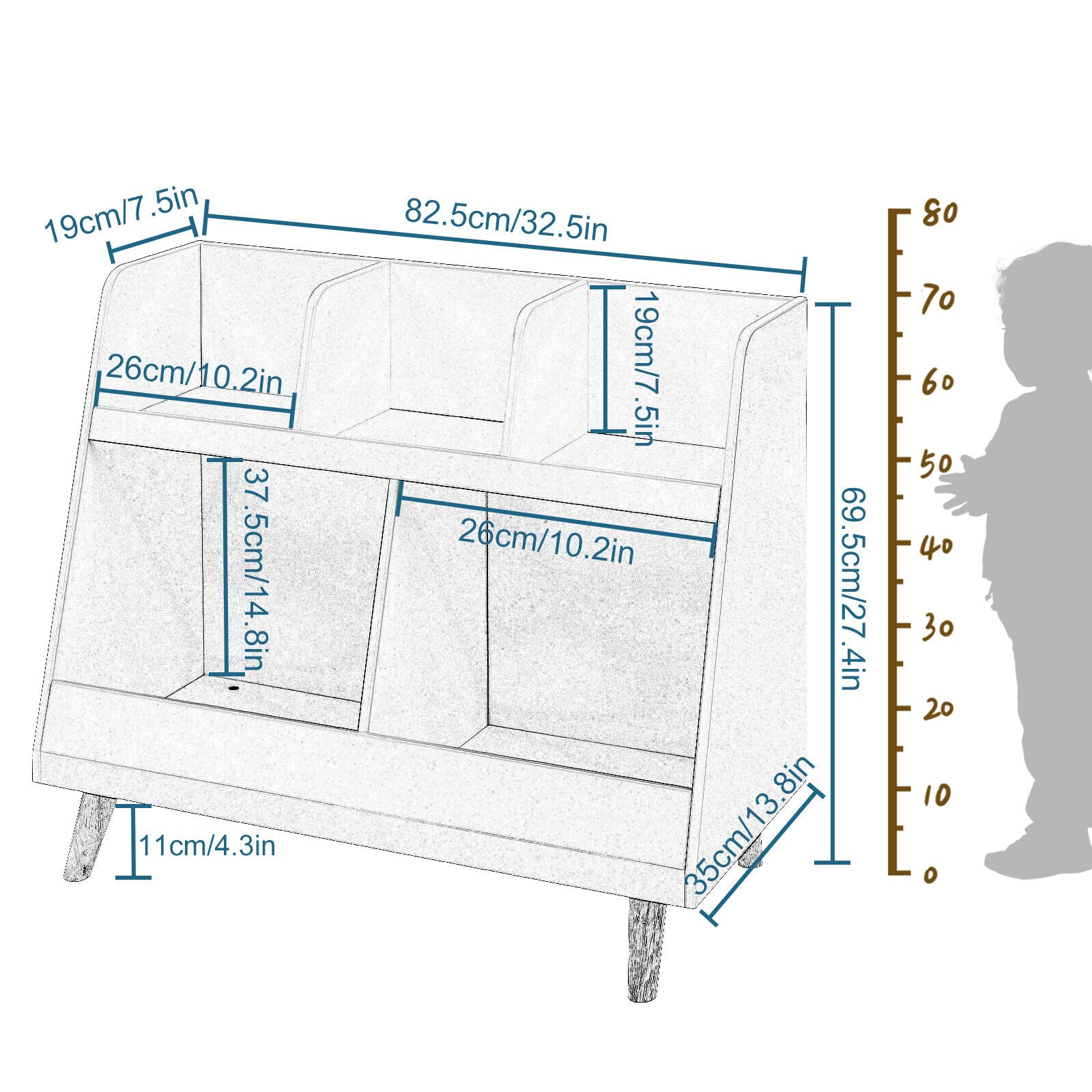 Children Bookshelf Storage Unit Kids Playroom Bookcase Rack Organizer Shelves