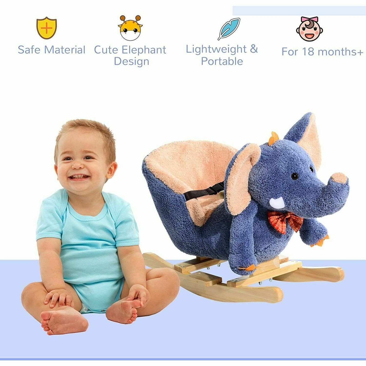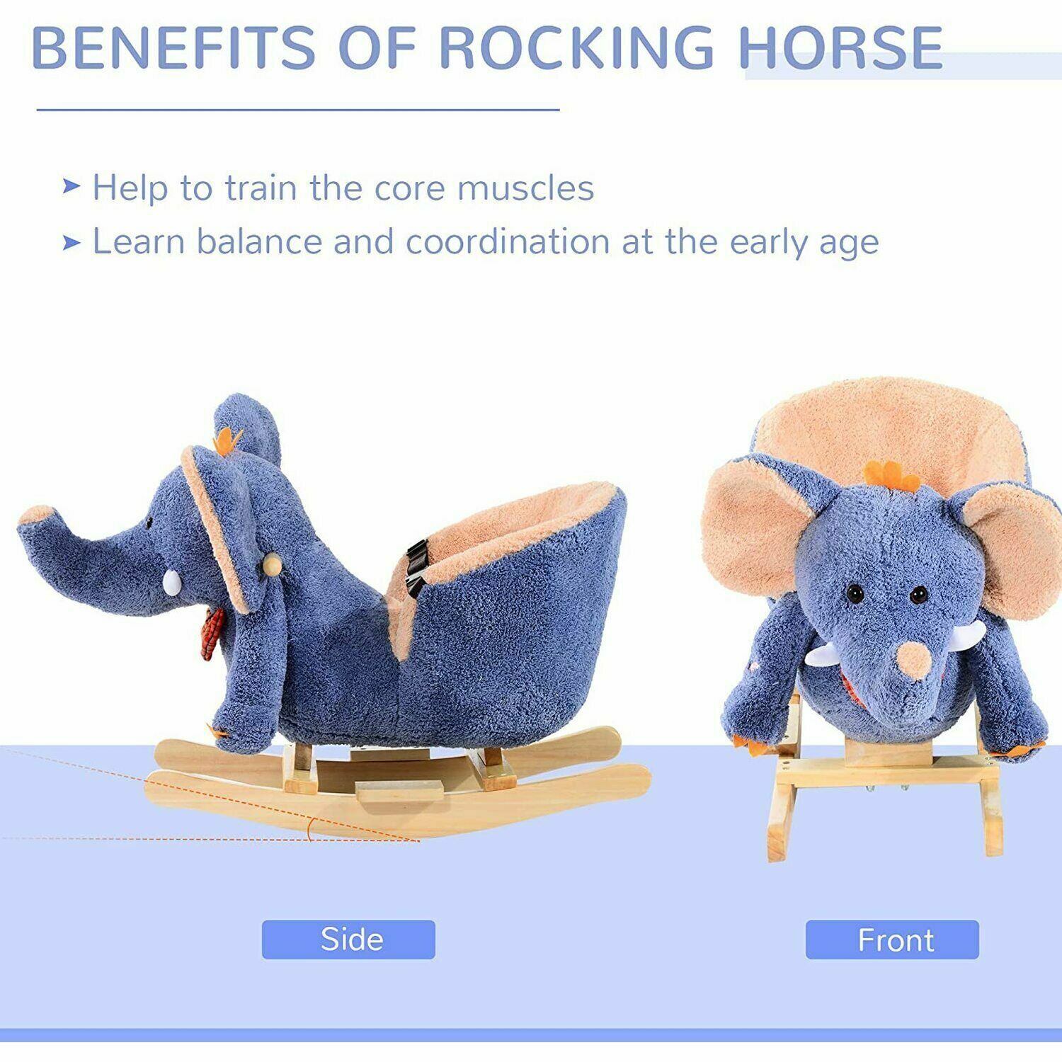 Children Kids Wooden Rocking Horse Rocker Elephant Ride On Toy Gift Seat Songs