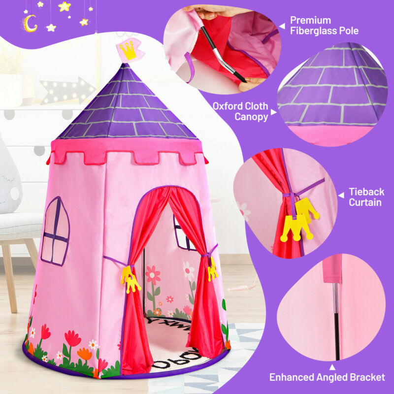 Children Playhouse Kids Prince Princess Castle Tent In/Outdoor W/ Carrying Bag