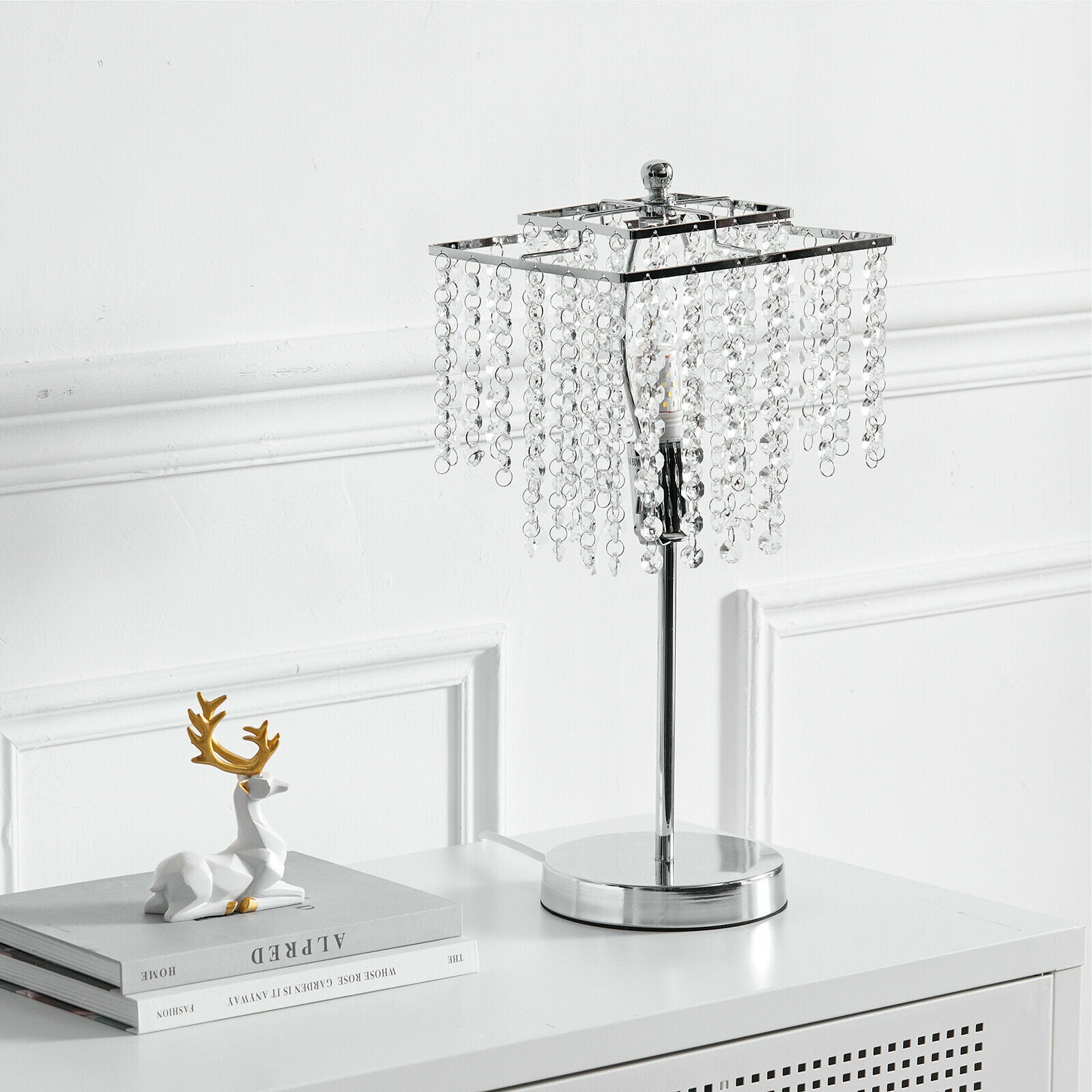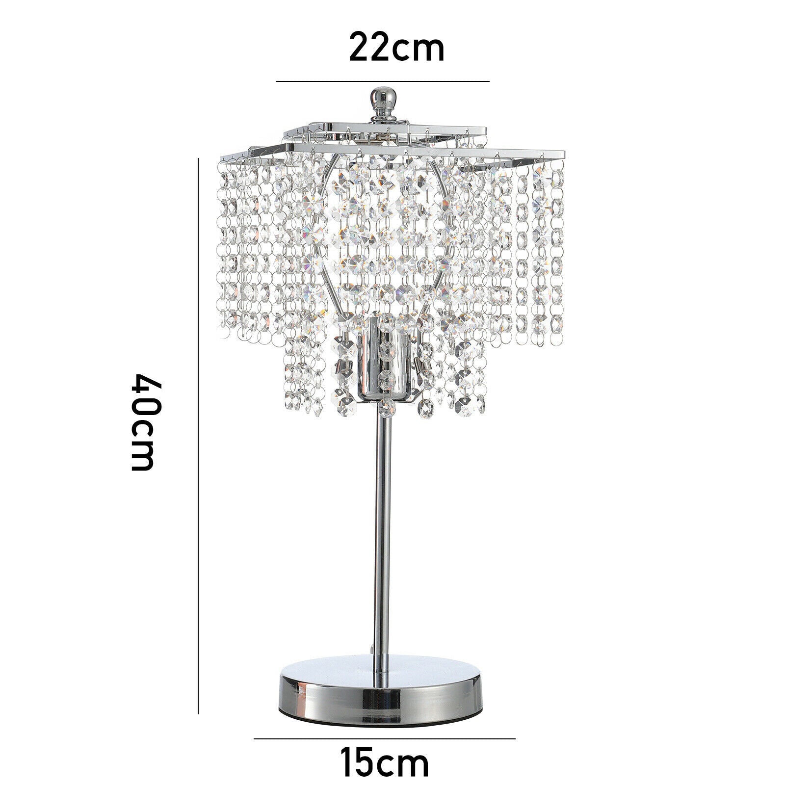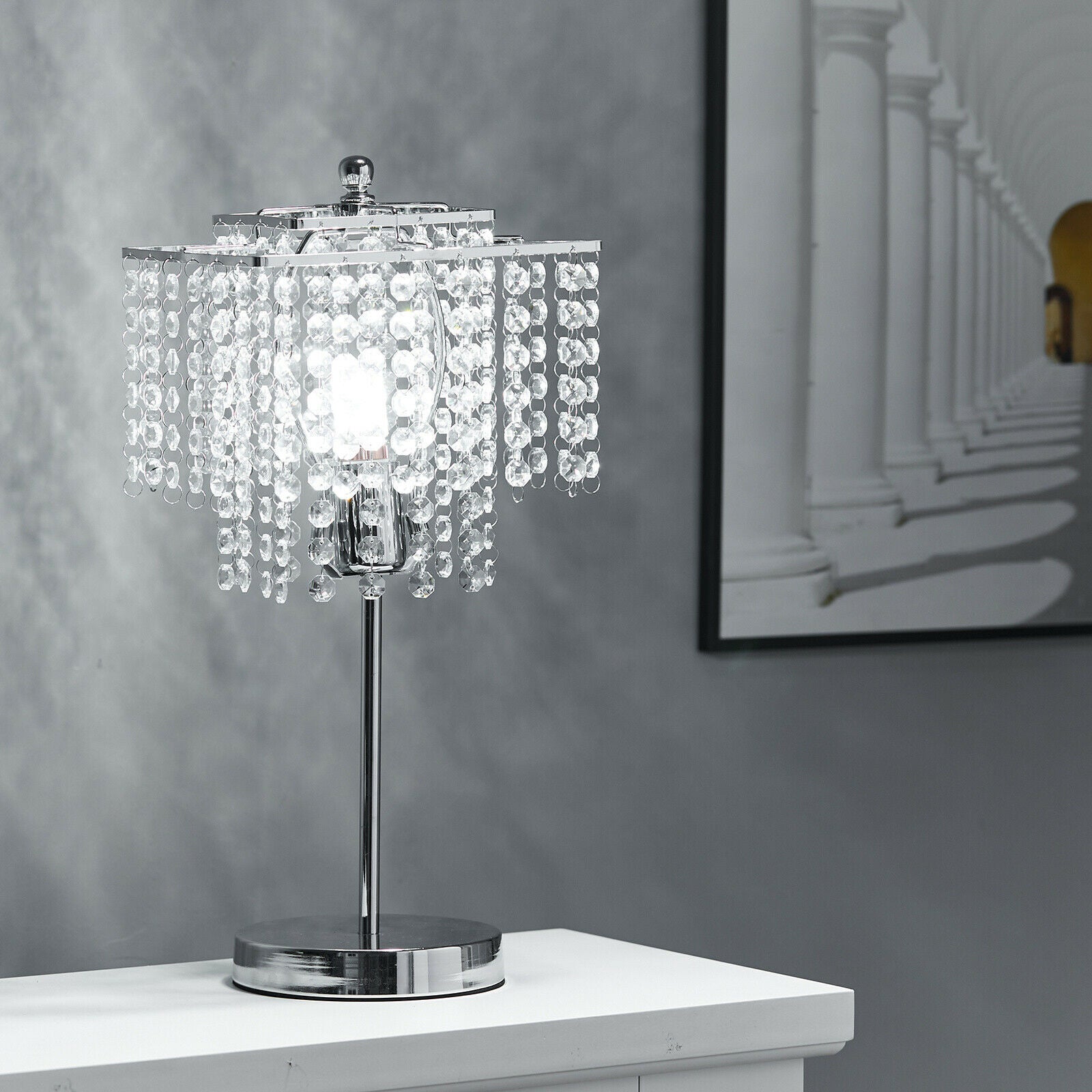 Chrome Table Desk Lamp with Crystal Lampshade Bedside Night Light Home Decor