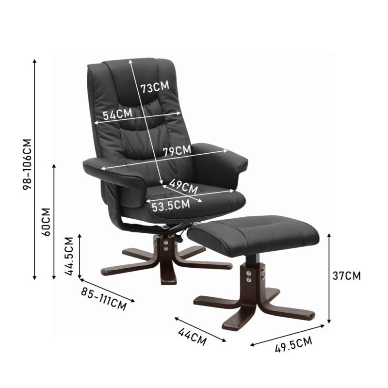 Classic Black PU Leather Armchair Recliner Office Swivel Lounger Chair+Stool Set