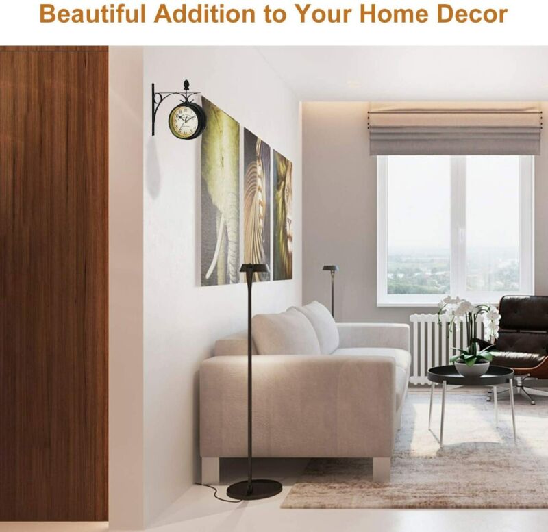 Classic Garden Double Sided Wall Clock Mounted Bracket f Porch Lobby Living Room