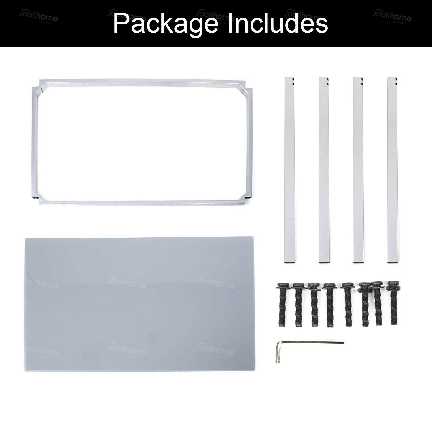 - Features: Tempered Glass, Chrome Legs, Flat Pack, High Gloss, Space Saving