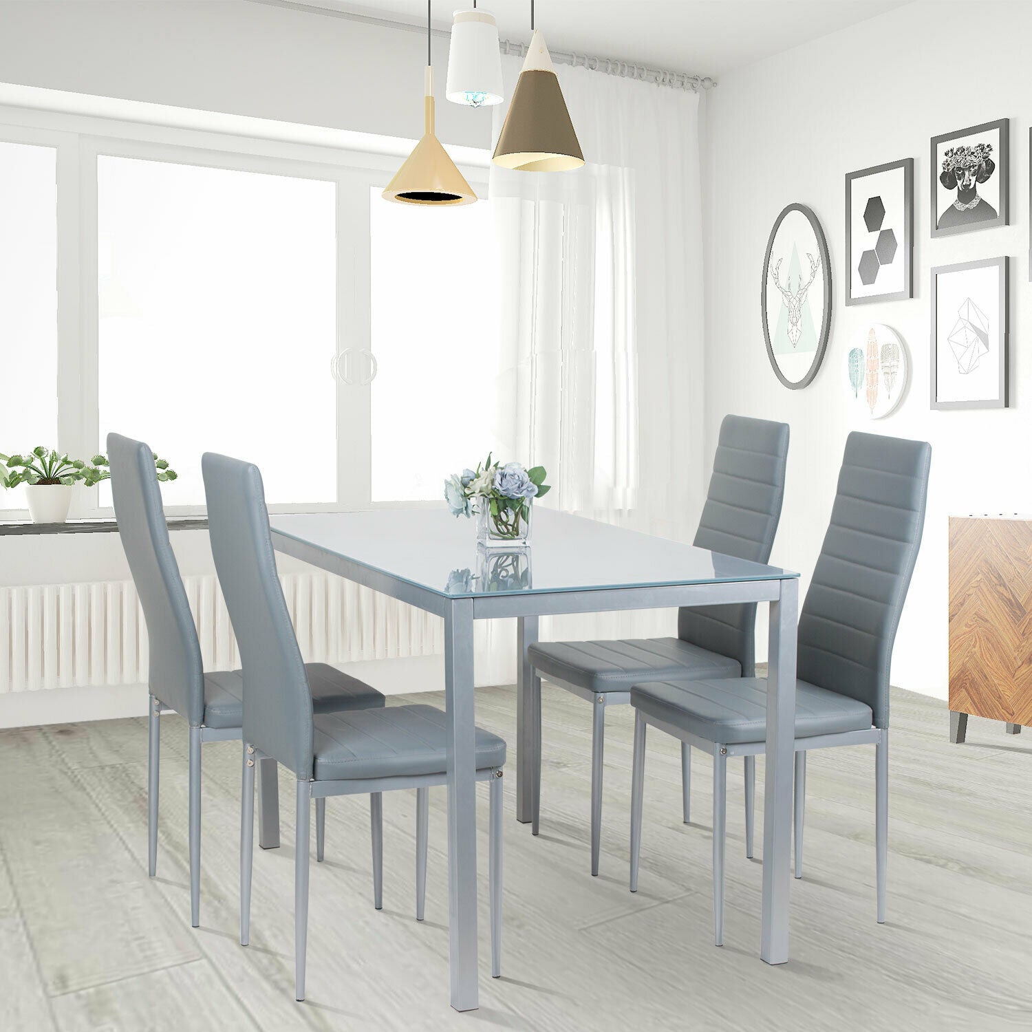 Classic Glass Dining Table and 4 Chairs PU Leather Set Kitchen Home Furniture