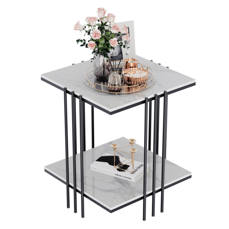 Classic Open Square Marble Side Table End Accent Table Nightstand Window Display