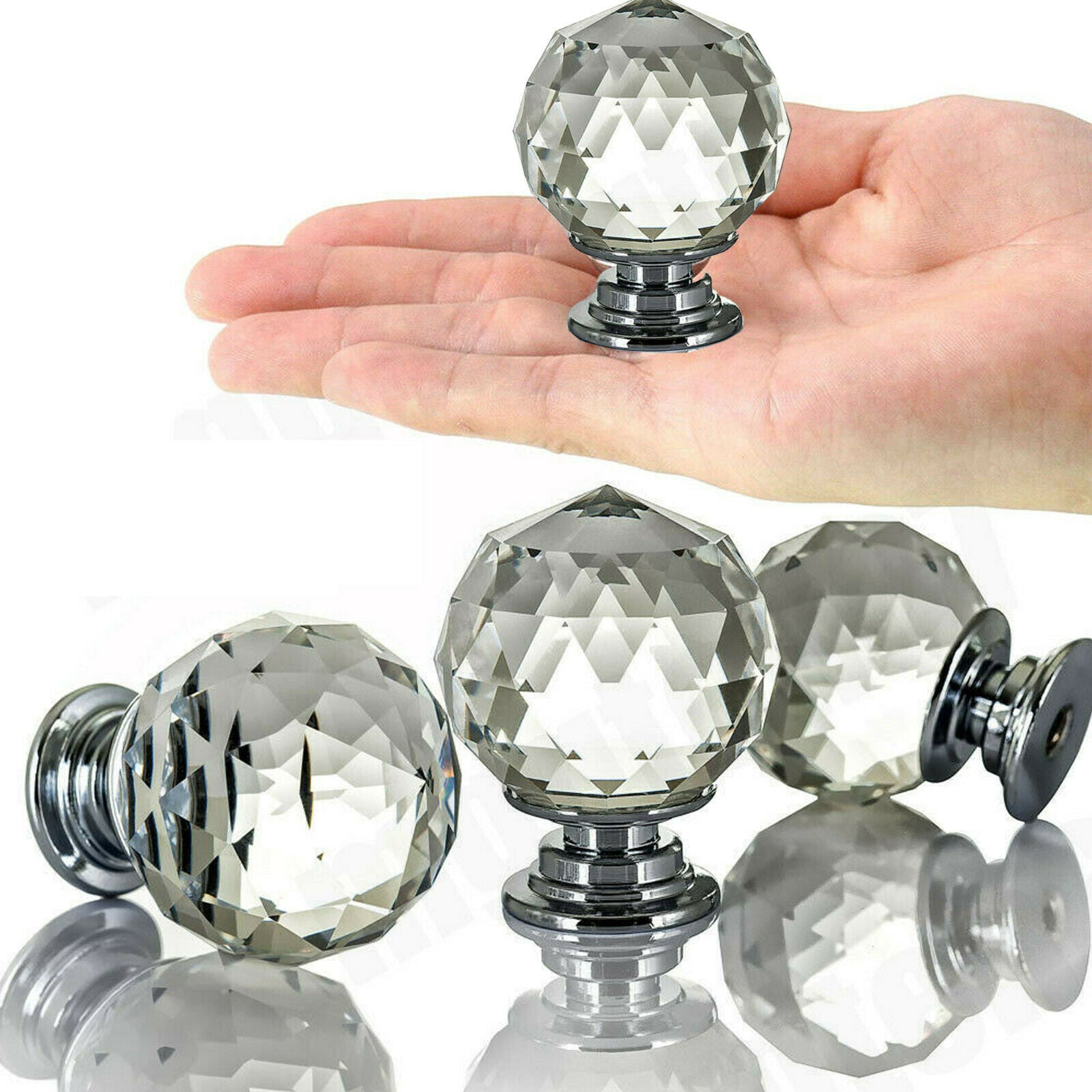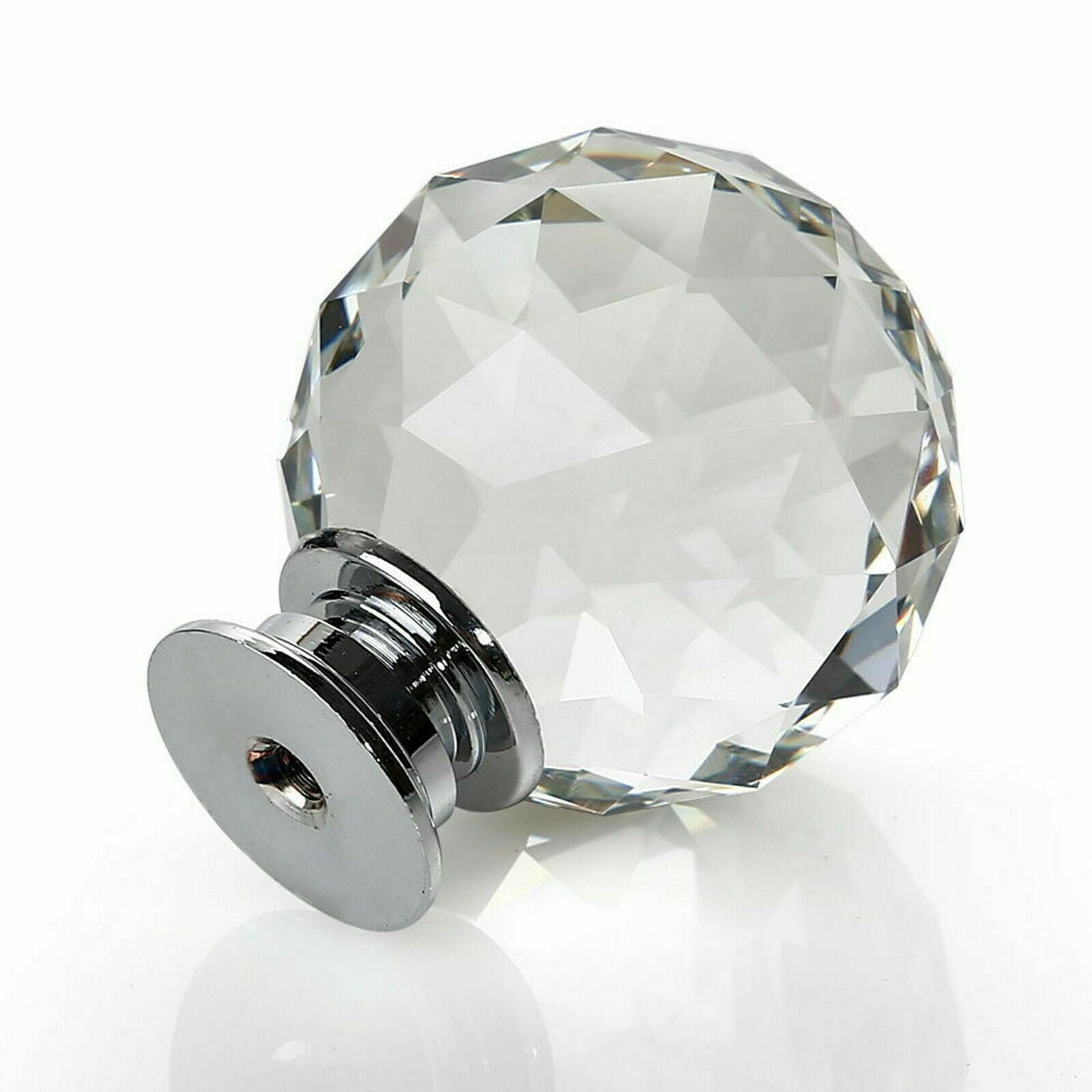 CLEAR CRYSTAL DIAMOND GLASS DOOR KNOBS CUPBOARD DRAWER FURNITURE HANDLE CABINET