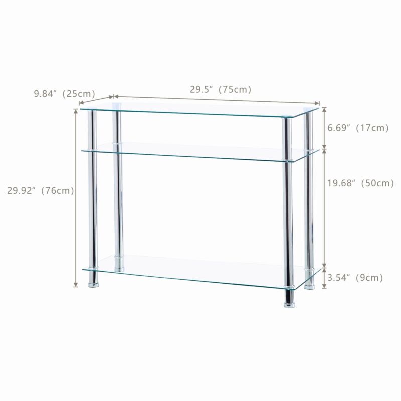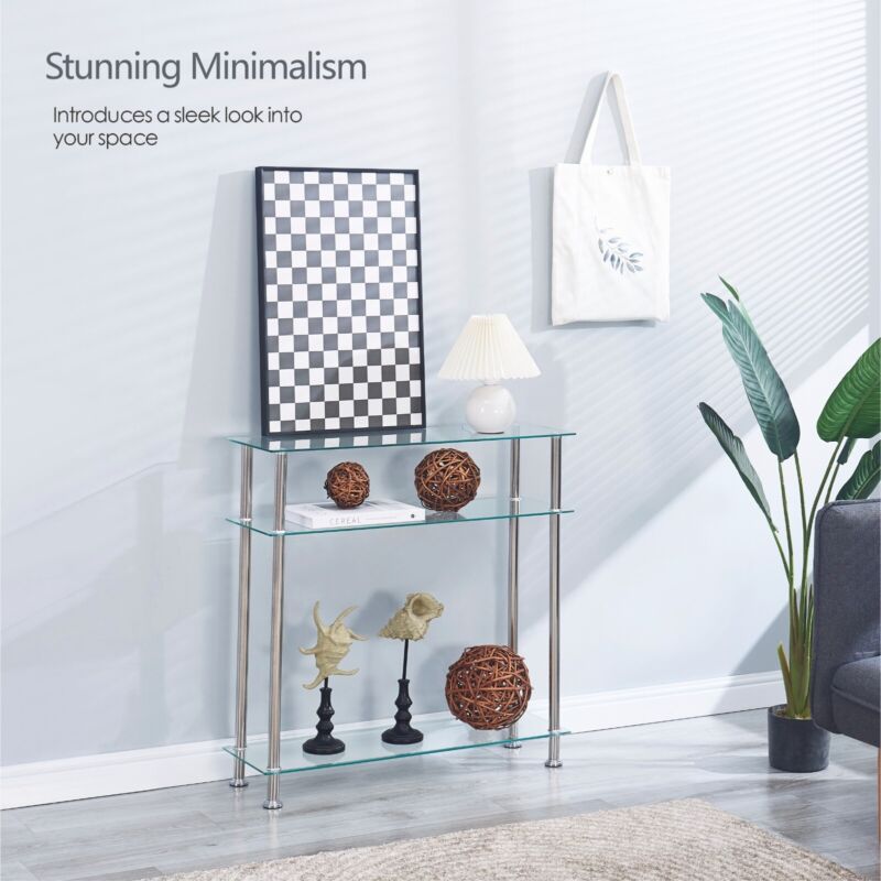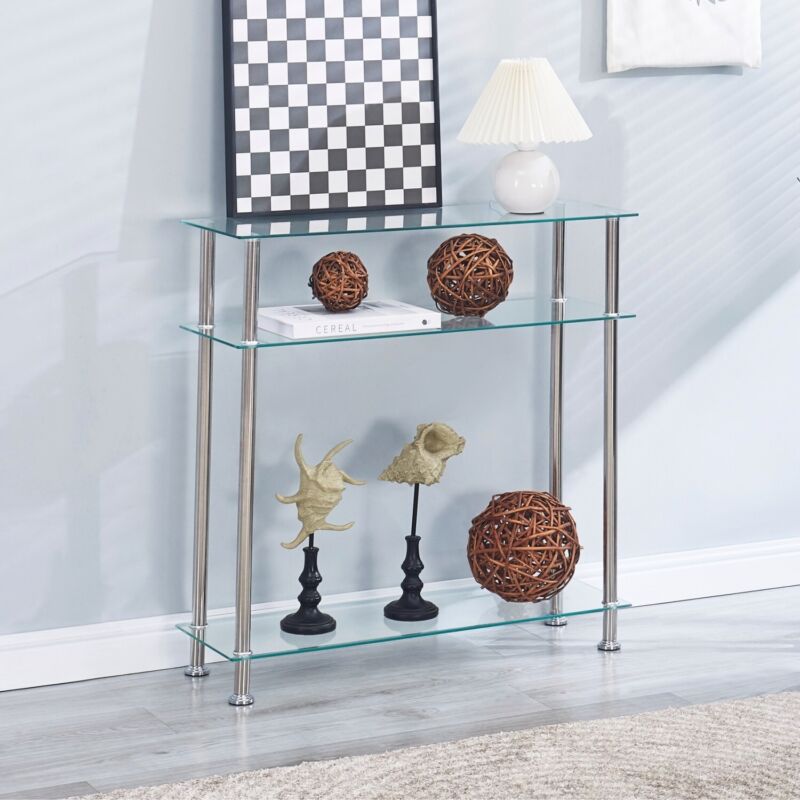Clear Tempered Glass Console Table Entryway Hallway Living Room w/ Storage Shelf