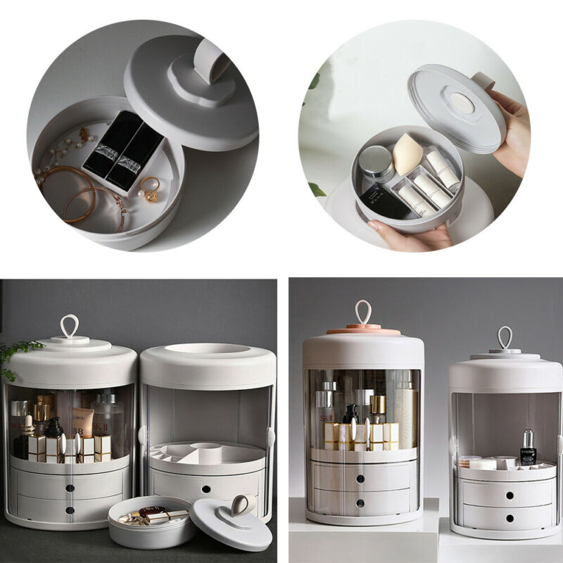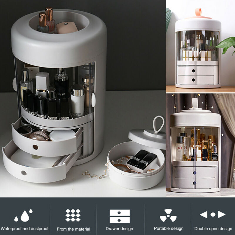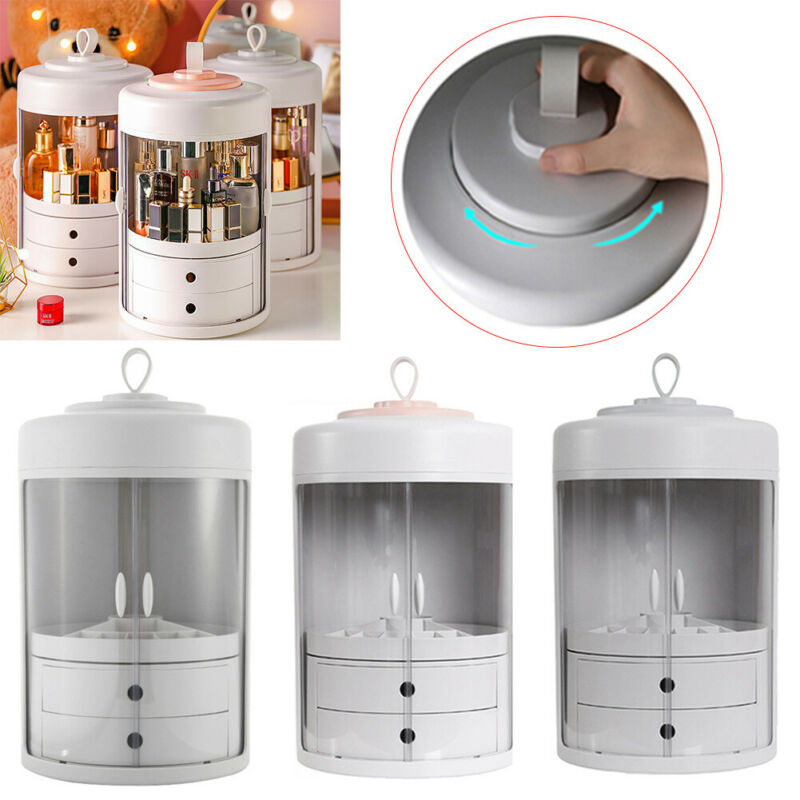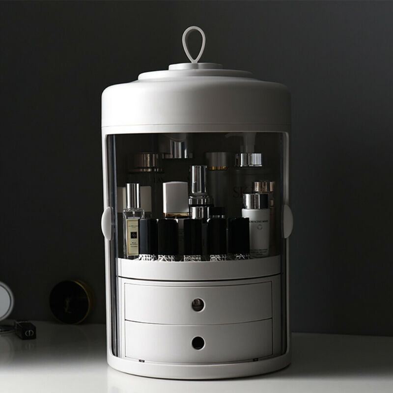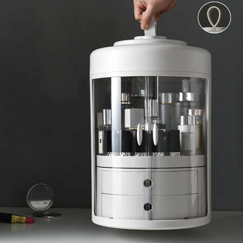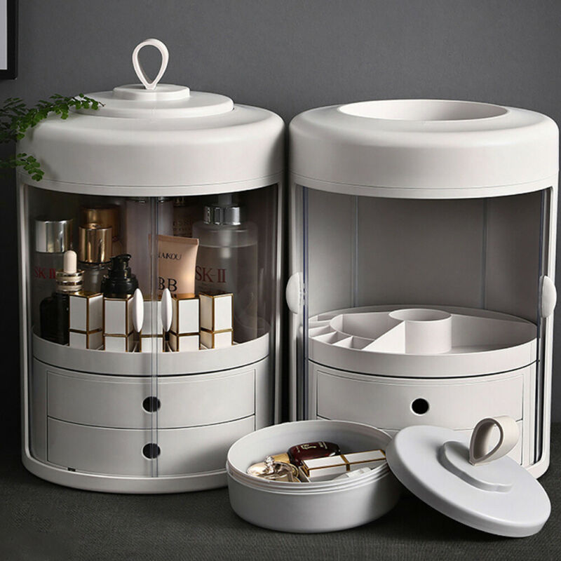 Clear White Rotating Storage Drawer Box Organizer Cabinet Office Home Desk Unit