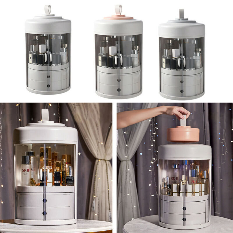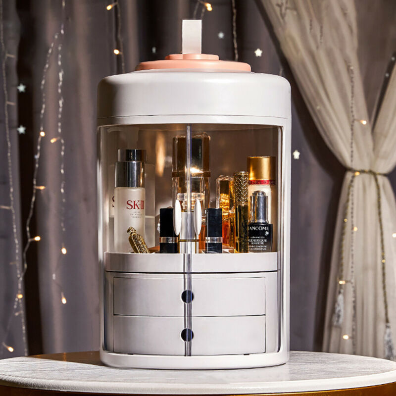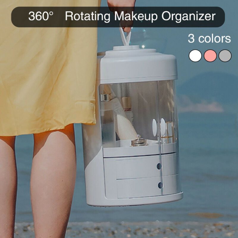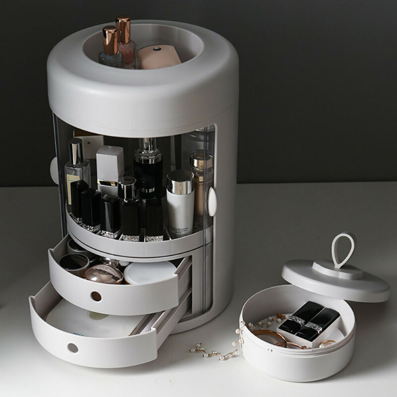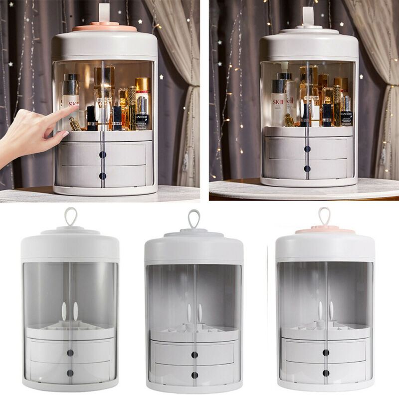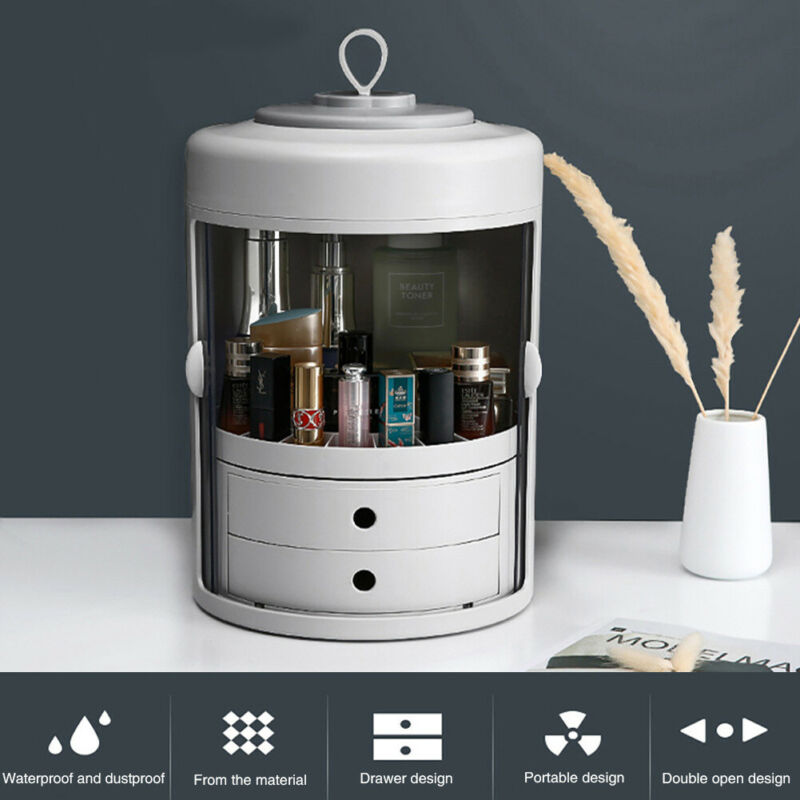 Clear White Rotating Storage Drawer Box Organizer Cabinet Office Home Desk Unit