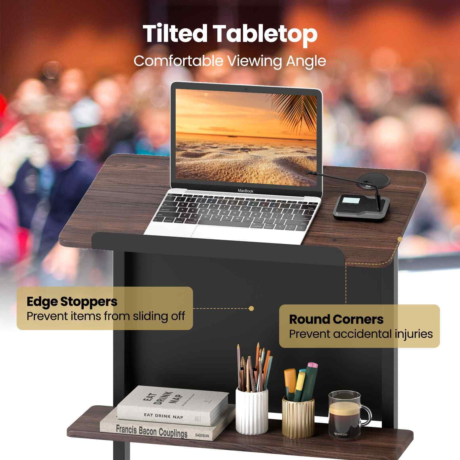 Rolling Podium Stand Height Adjustable Lectern Table with Tilted