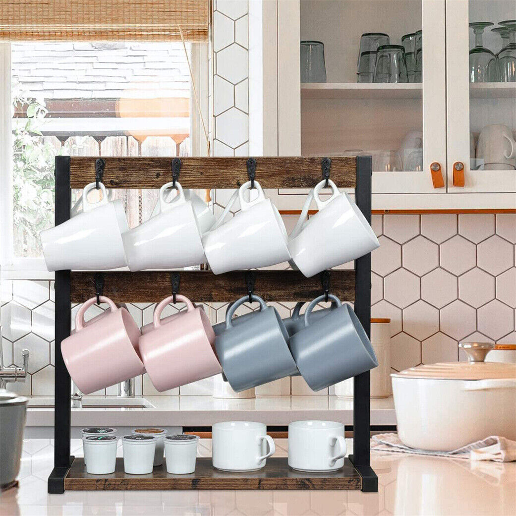 Coffee Mug Holder Free Standing Tabletop Tea Cup Kitchen Storage Rack w/16 Hooks