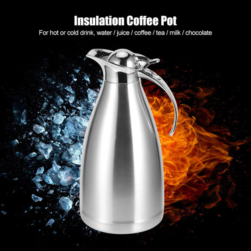 Coffee Pot Thermal Stainless Steel Vacuum Insulation Kettle Large Capacity 2L UK