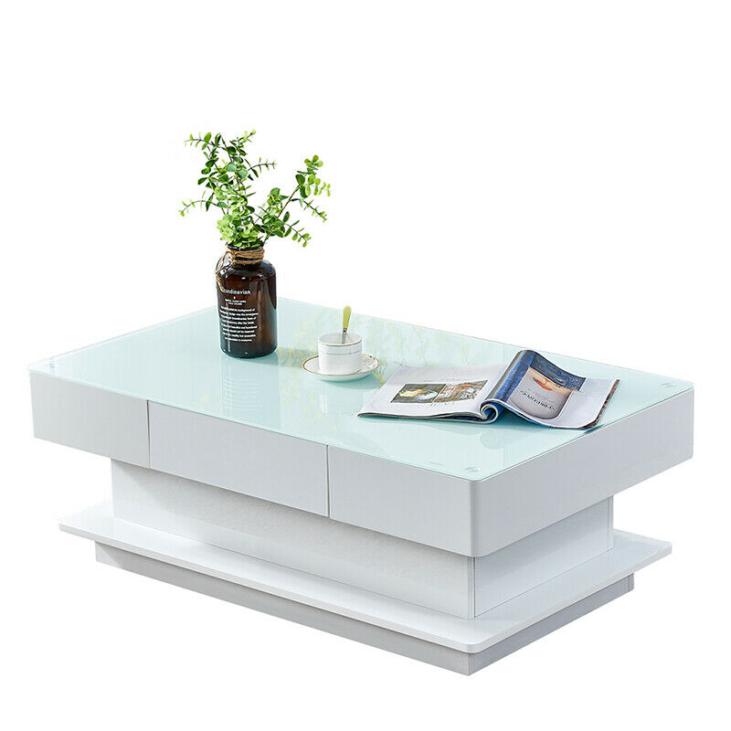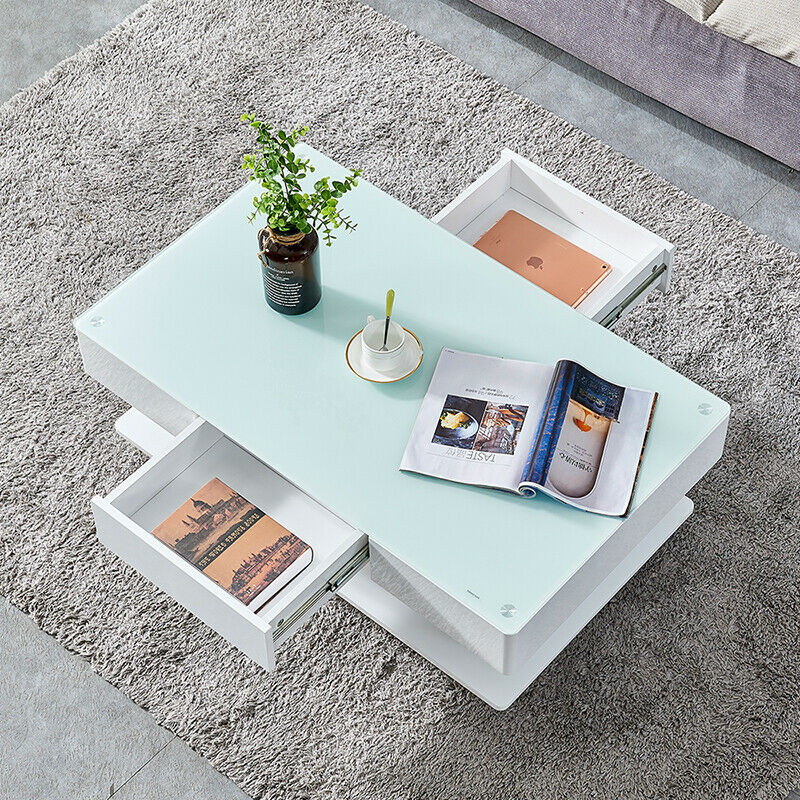 Coffee Table 2 Storage Drawers Tea Side End Table Living Room Furniture White UK