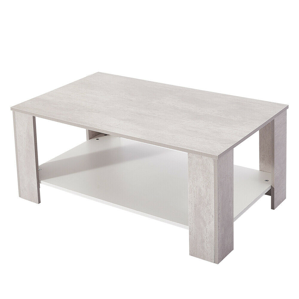 Coffee Table 2 Tier Console Table Bottom Shelf Storage Retro Living Room Table