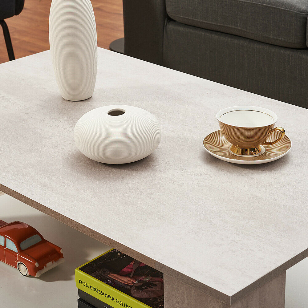Coffee Table 2 Tier Console Table Bottom Shelf Storage Retro Living Room Table