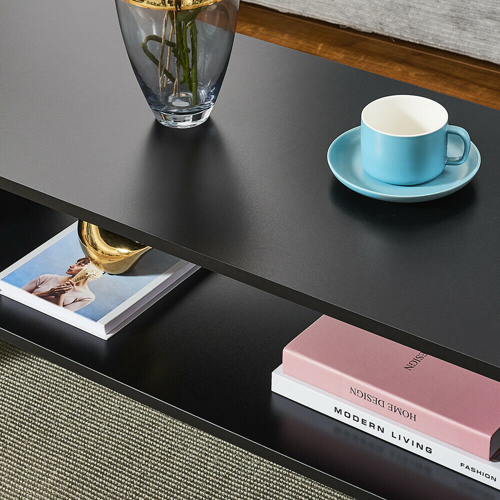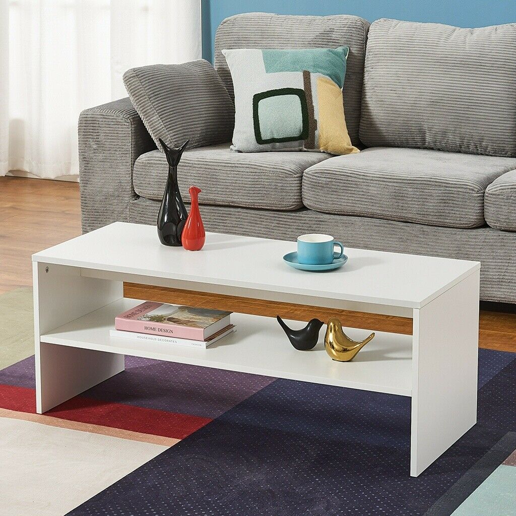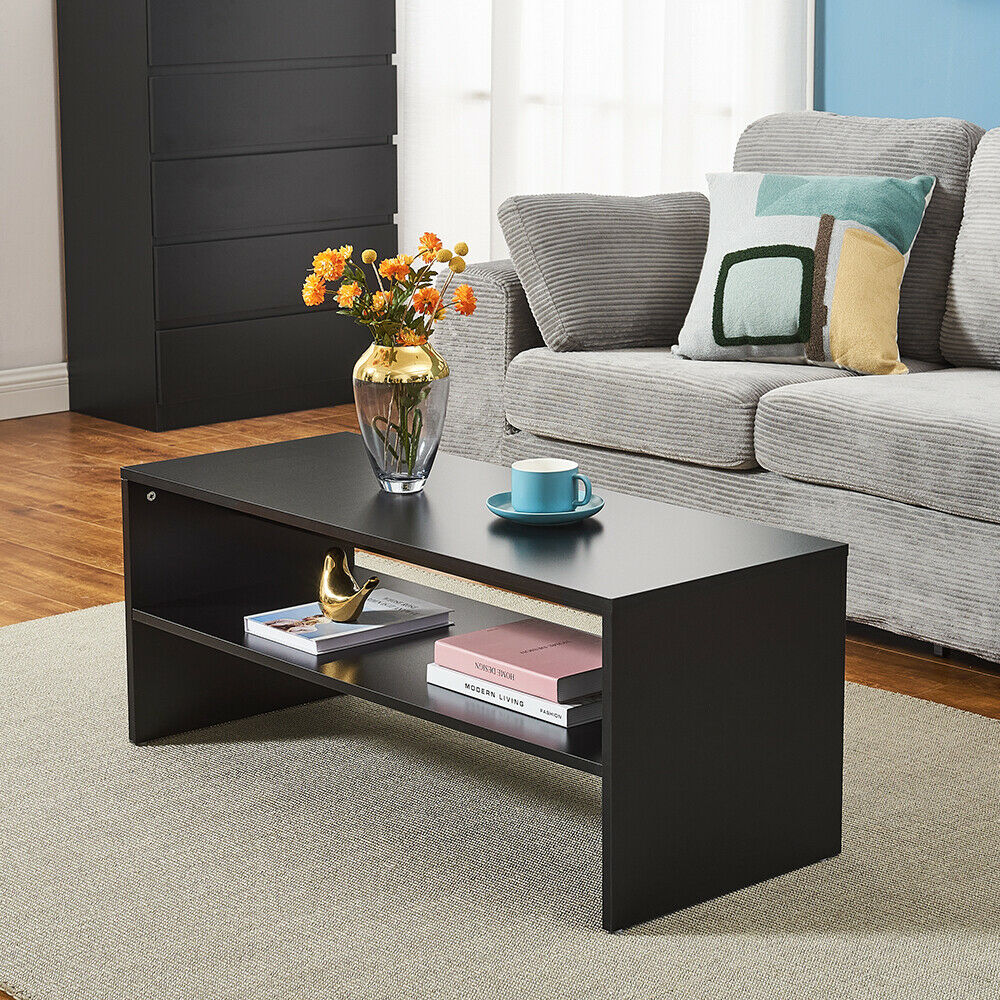 Coffee Table 2 Tiers Wood Tea Table Home Living Room Rectangle Table Black White