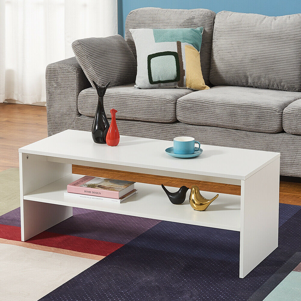 - Coffee Table 2 Tiers Wood Tea Table Home Living Room Side Table White / Black UK